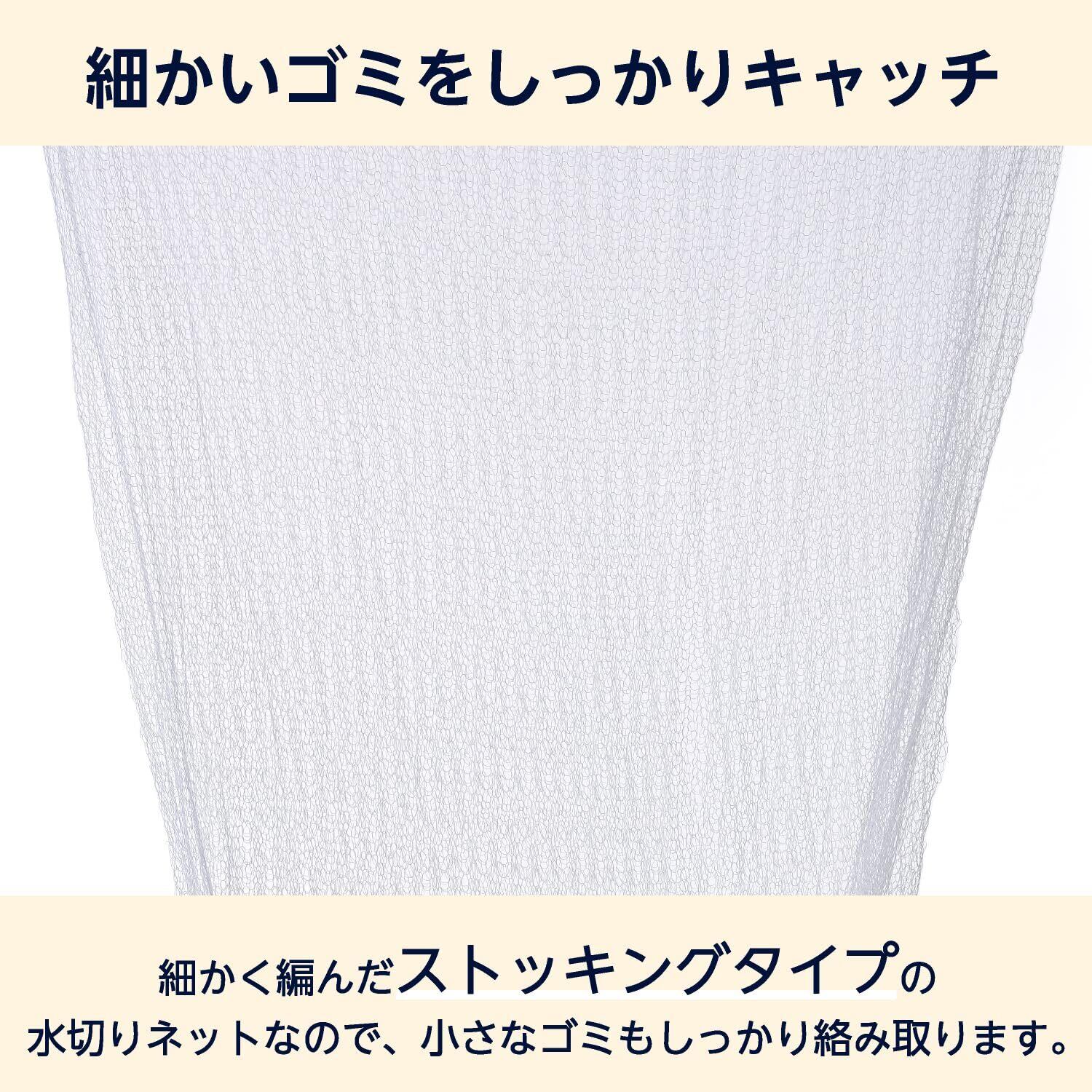 深さ10cm以下の浅型タイプにご使用ください。システムキッチンの浅型排水口に便利です。細かく編んだストッキングタイプなので、小さなゴミもしっかりキャッチ、水切れにも優れています。首部の伸縮ゴムで、いろいろな形の浅型の排水カゴに簡単にセットできます。