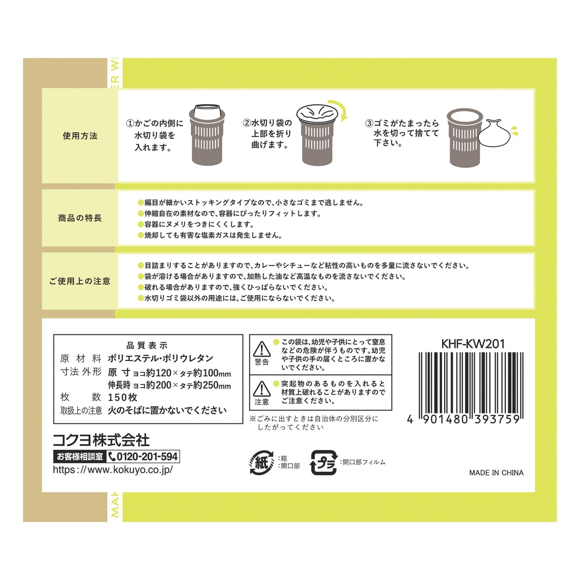 コクヨ 台所・食卓用品 HibiFull 横からも取り出せる ストッキング 水切りネット 細型 150枚入り 約12×10cm KHF-KW201