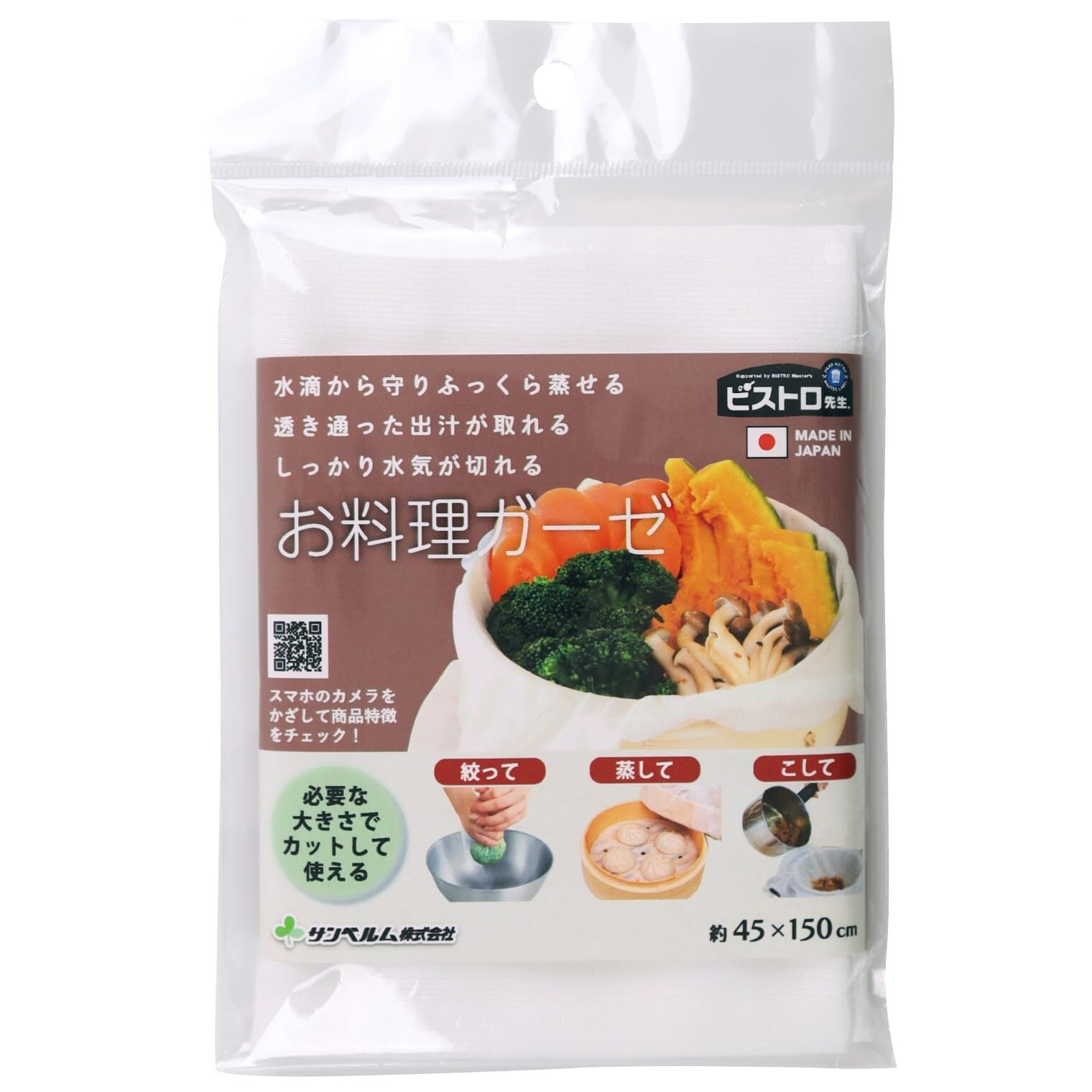 サンベルム (sanbelm) 調理用品 蛍光増白剤不使用 無蛍光晒 綿100% 木綿 日本製 45×150cm ホワイト K42013 ビストロ先生 お料理ガーゼ