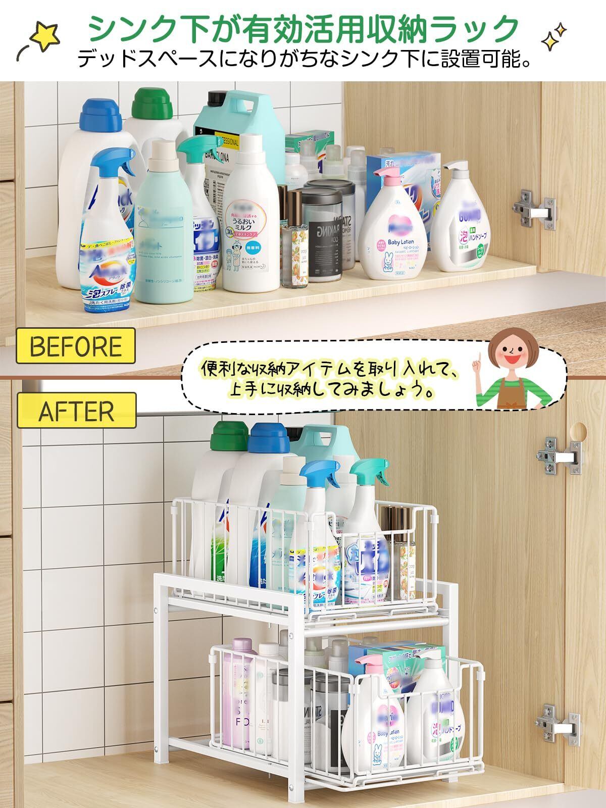 【シンク下収納をすっきり整理】シンク下はスペースがあるのに、ただ、ものが多くてごちゃごちゃしてしまったり、デッドスペースがあったりすることも多いですよね。それで、TKUINシンク下収納スライドが登場!シンク下収納をもっと使いやすくしましょう!