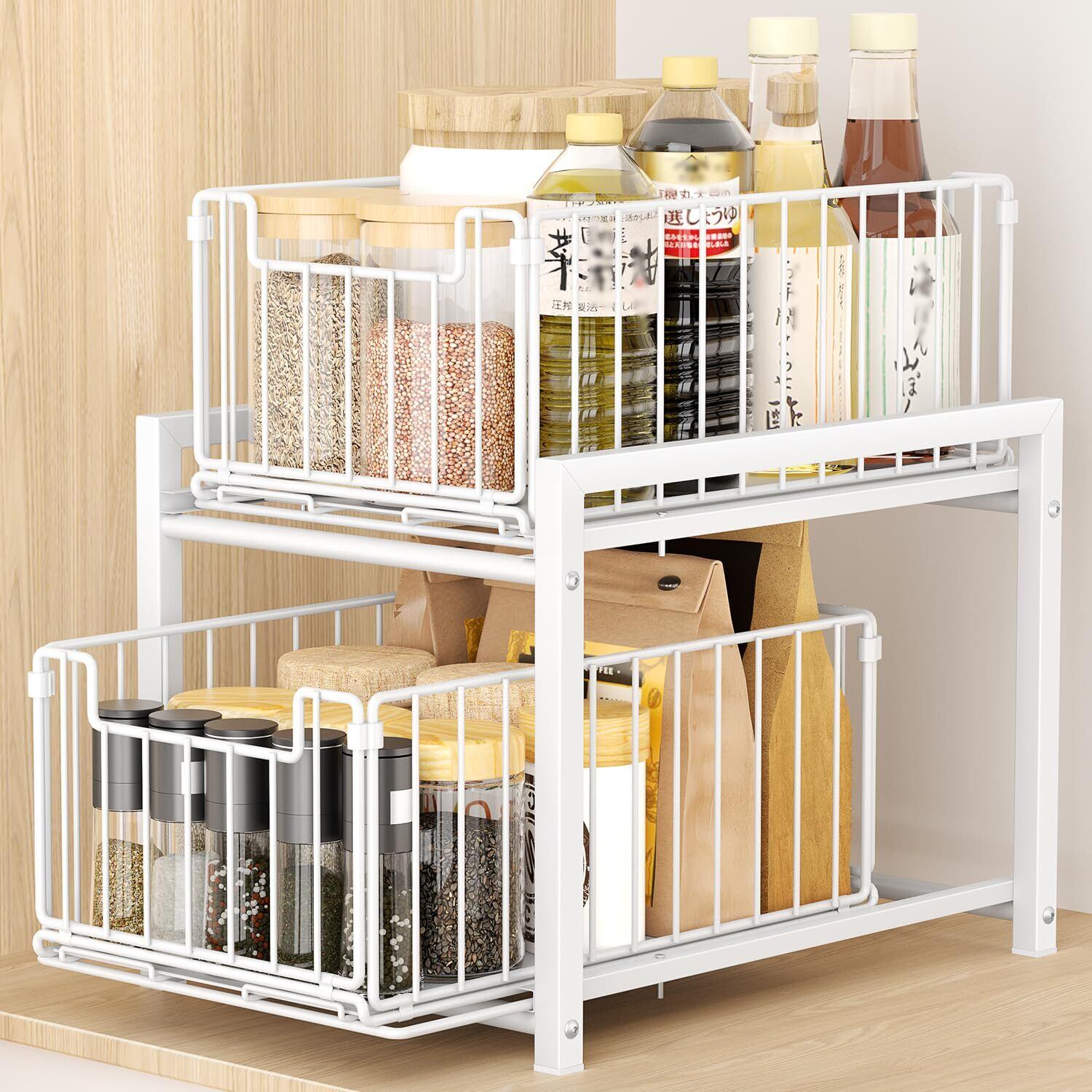 TKUIN シンク下ラック 収納 スライド 幅27×奥行37×高さ38.5cm 大容量 引き出し 2段 キッチン収納 洗面台下 収納ラック キッチンラック 台所 整理収納 キッチンストッカー スチール製丈夫 シンク下収納ラック (White)