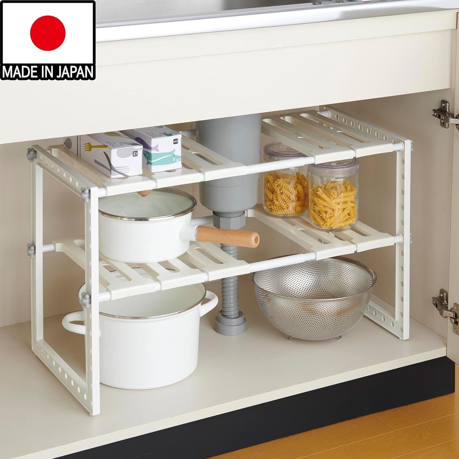 Belca(ベルカ) 日本製 キッチン収納 シンク下フリーラック 伸縮タイプ 幅50~75×奥行30.3×高さ39.8cm ホワイト シンク下収納 2段 棚 VR-EXT