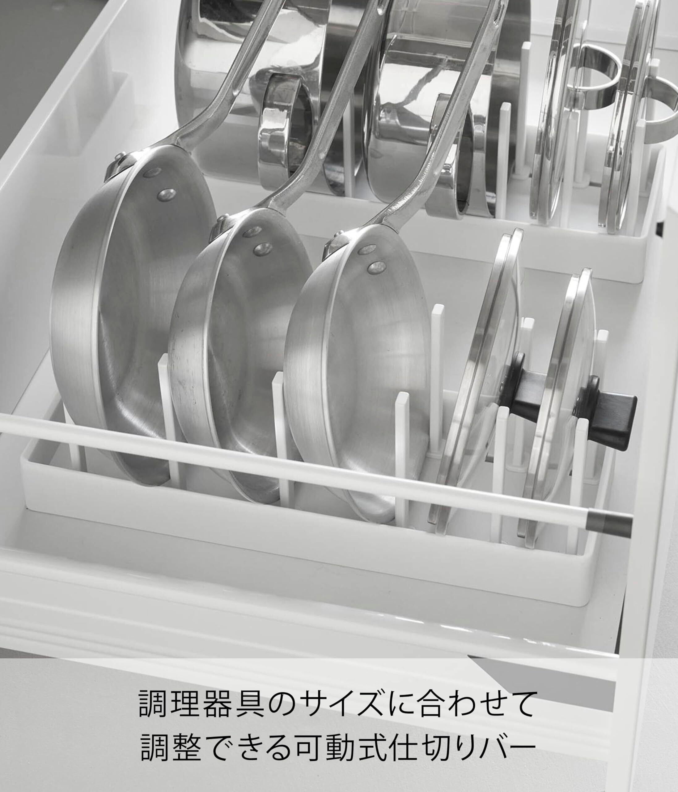 山崎実業(Yamazaki) シンク下 幅調節 鍋蓋&フライパン収納スタンド W40 ホワイト W40×D14.1×H14cm タワー tower スライド式 仕切りバー 1361