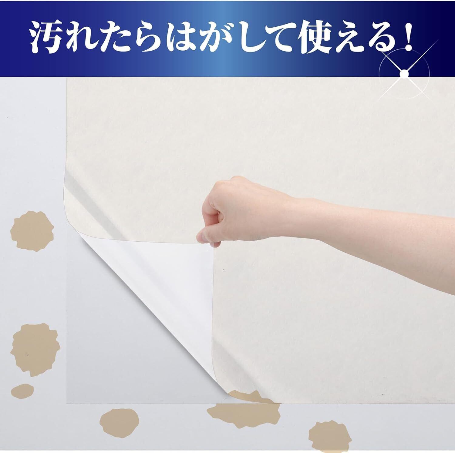 ・透明シートが3枚貼り合わせた状態になっているので、汚れたら1枚ずつはがせて経済的
