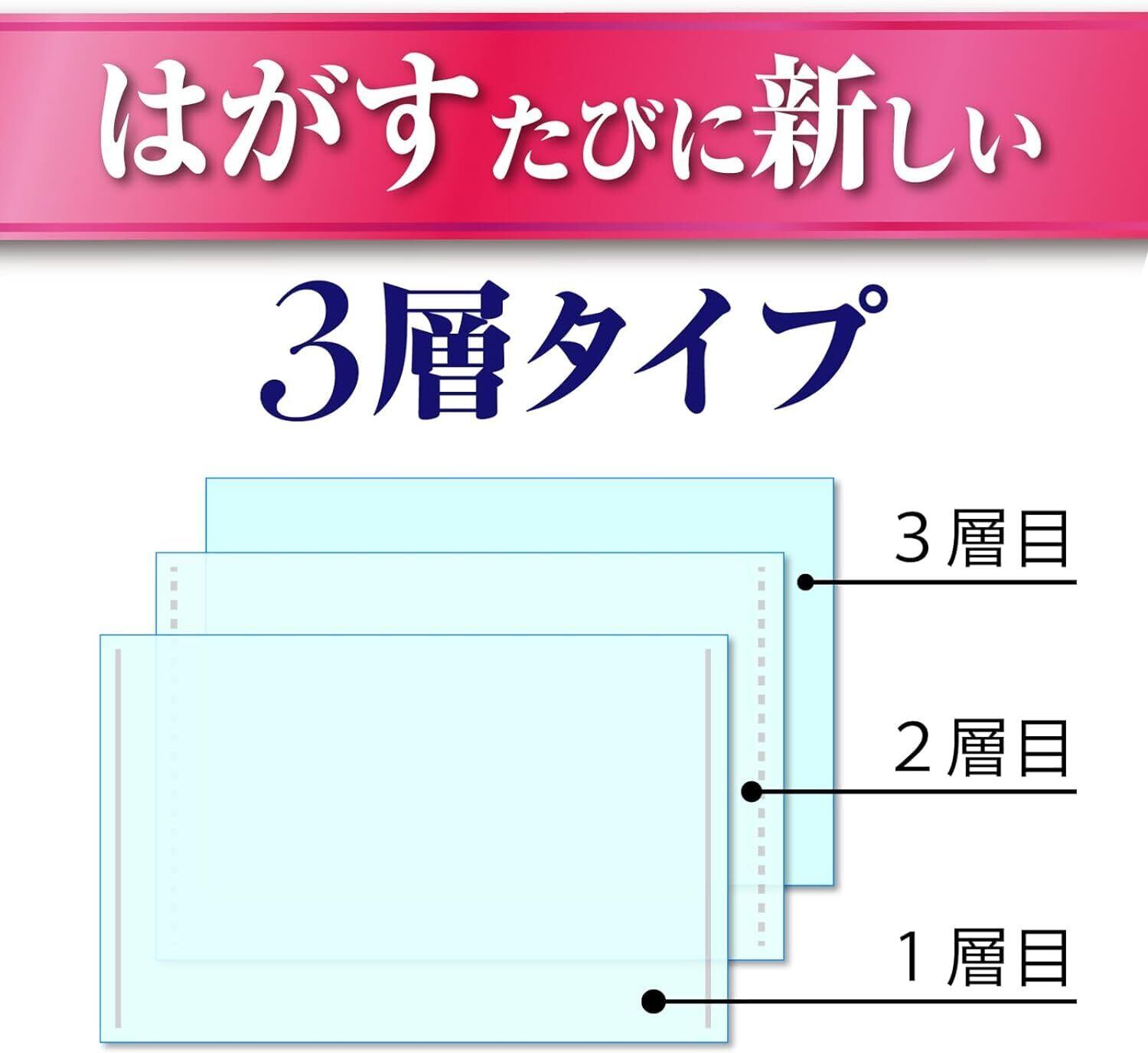 3枚貼り合わせた状態なので、1枚ずつはがせて経済的。剥がすたびに新しい