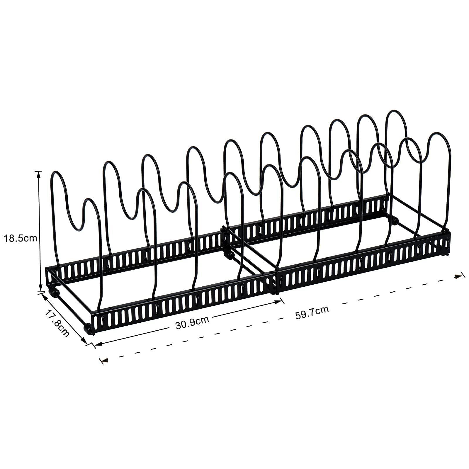 Toplife伸縮式 フライパンラック キッチン 鍋収納ラック 10本仕切りパーツ付き フライパン 鍋 鍋蓋置き(黒)