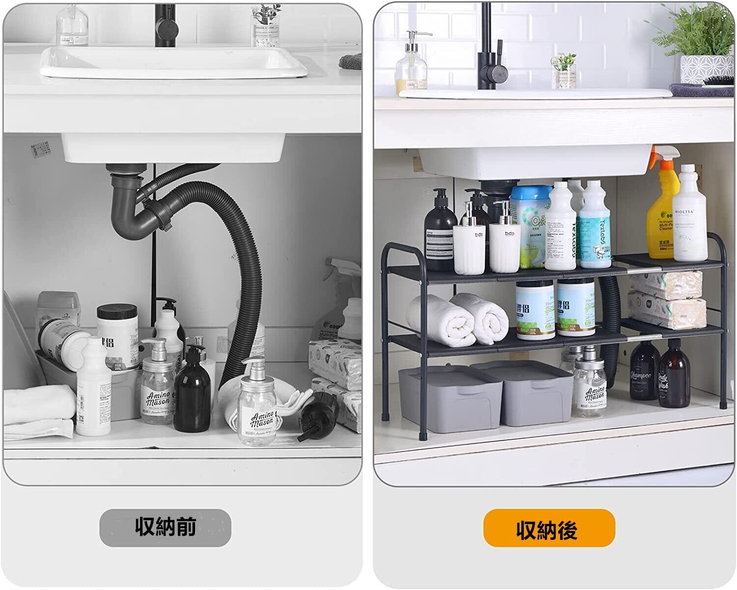【シンク下だけでなく】アンダーシンクに限らず、様々な用途にお使いいただけます。キッチン料理台、食器棚、シンク下、押し入れやクローゼットなどでの収納に有効活用して、キッチン、洗面所、浴室、事務室などでの収納にはいいですよ。