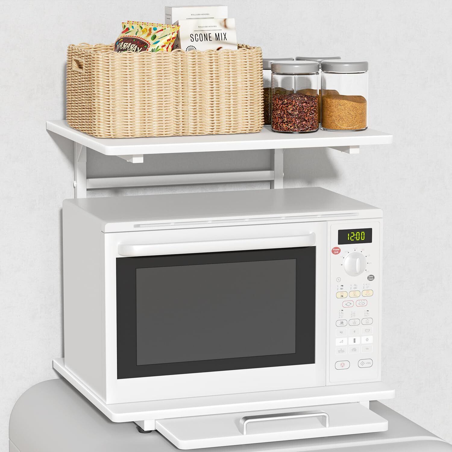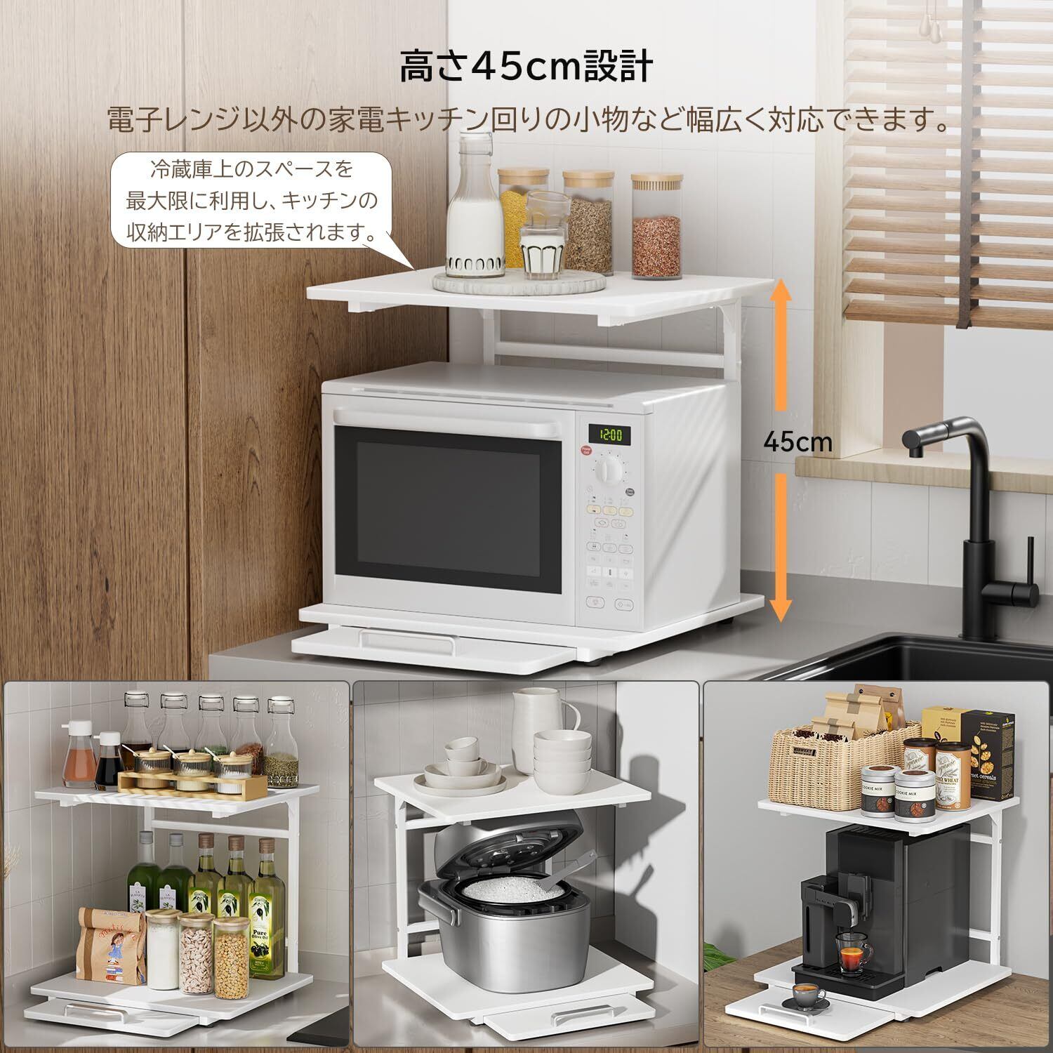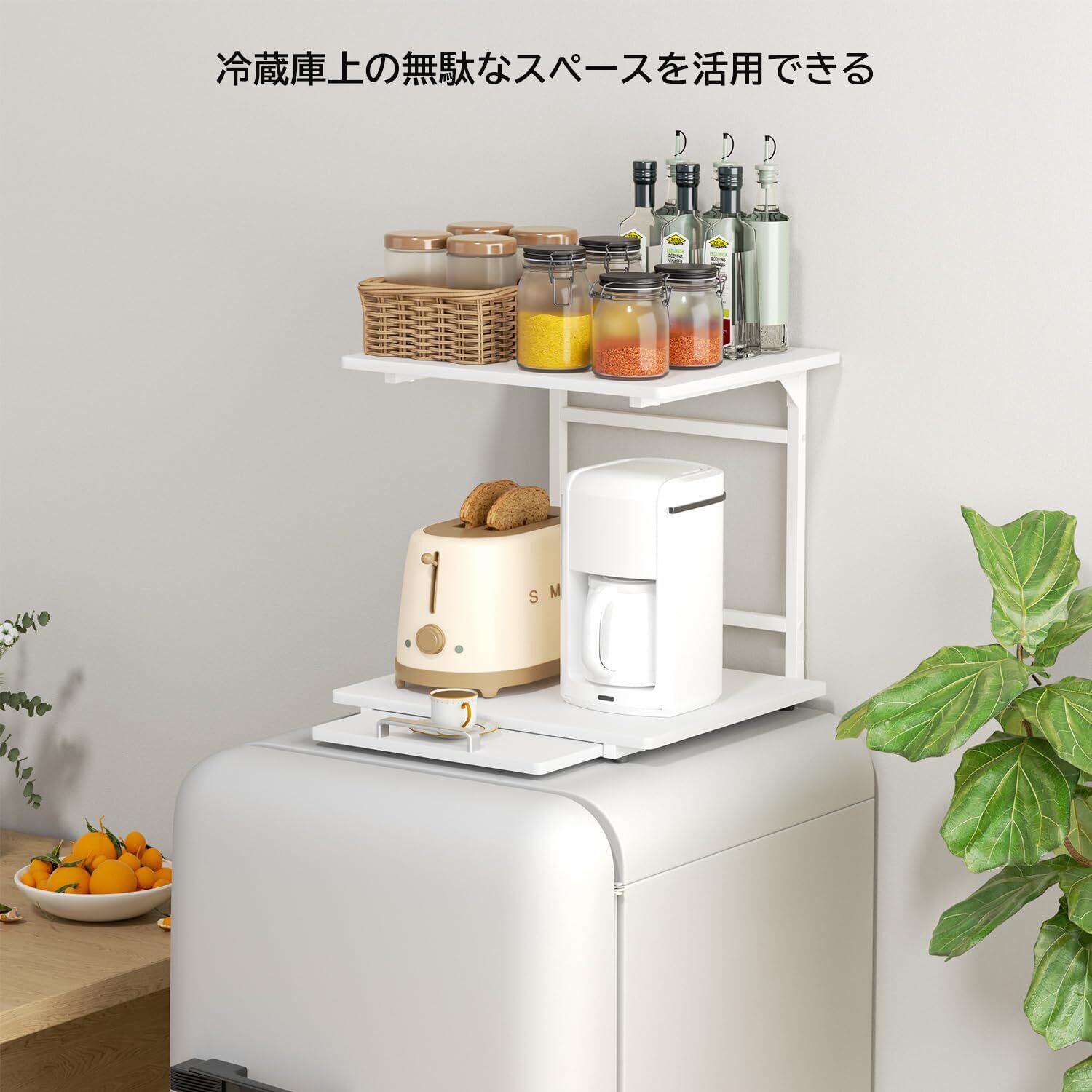 UTIMIU 冷蔵庫上ラック レンジラック スライド棚付き キッチン 収納ラック 食器棚 幅47.5×奥行43.5-69.5×高さ45cm 電子レンジラック 冷蔵庫上棚 隙間収納 組立品 (ホワイト)