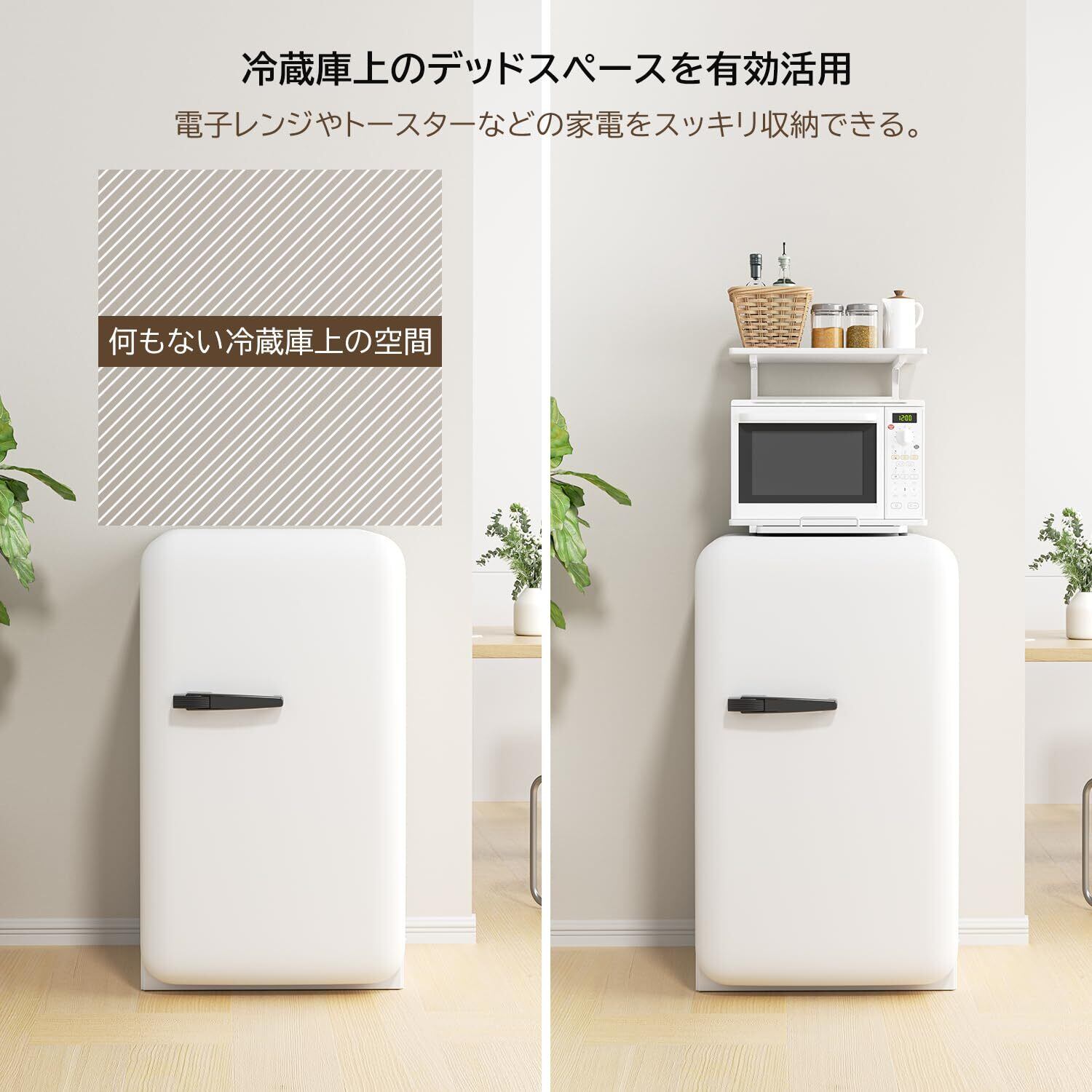 【デッドスペースを活用】キッチンラックは小型冷蔵庫上のデッドスペースを活用でき、冷蔵庫上の無駄な空間を便利な収納スペースに変わり、家電/器具や小物を収納まとめて収納できます。冷蔵庫上だけではなく、デスク上、キッチン等のでも幅広く利用でき、お部屋の収納スペースを広げられます。