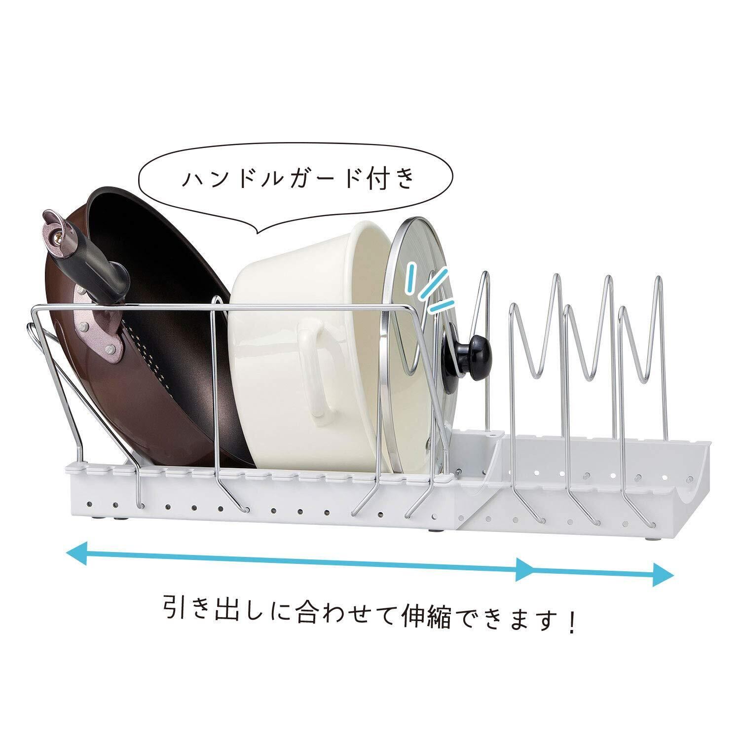 Belca キッチン収納 フライパン・鍋・ふたスタンド 2WAY 伸縮タイプ 幅29~55×奥行26.2×高さ17.4cm ホワイト PFN-NS