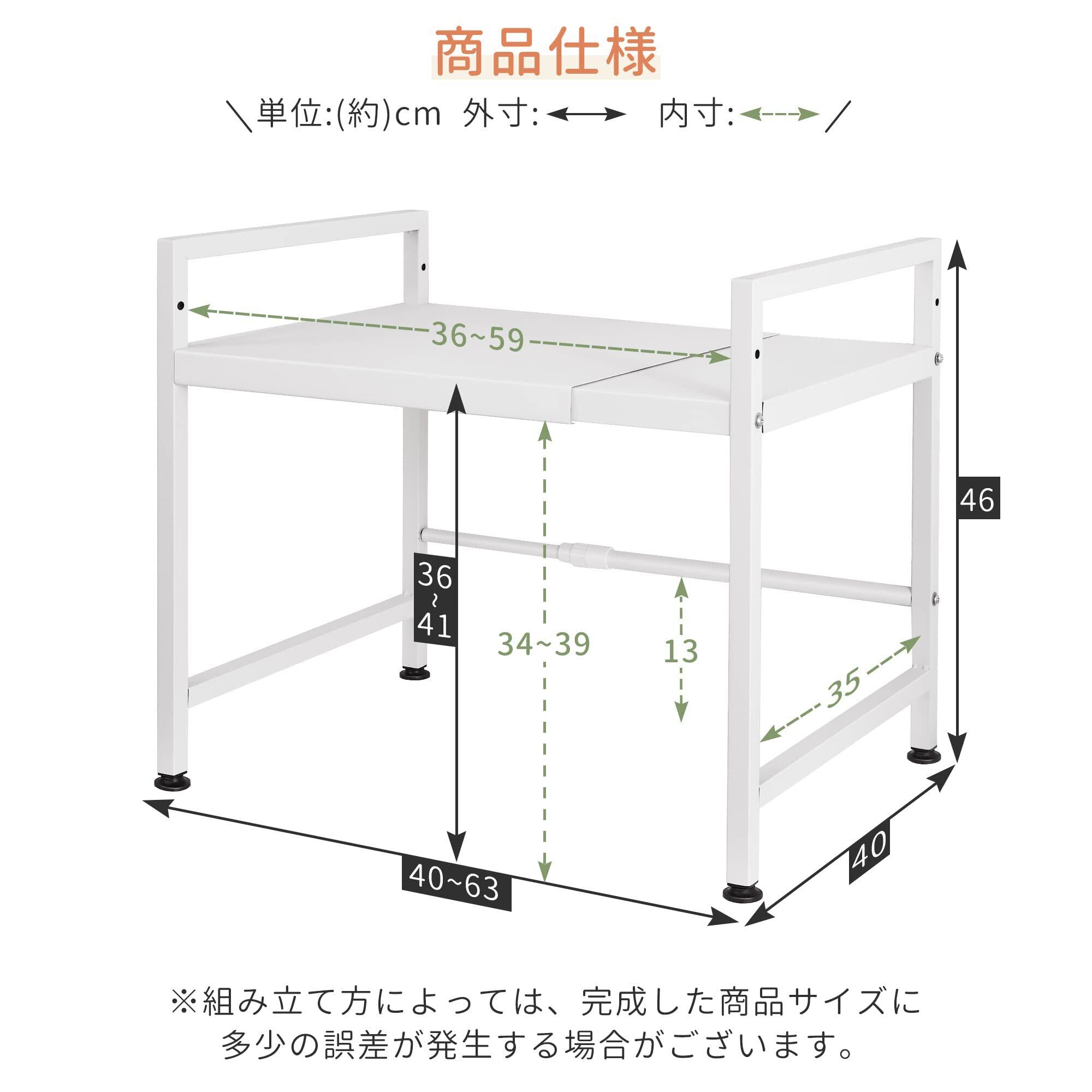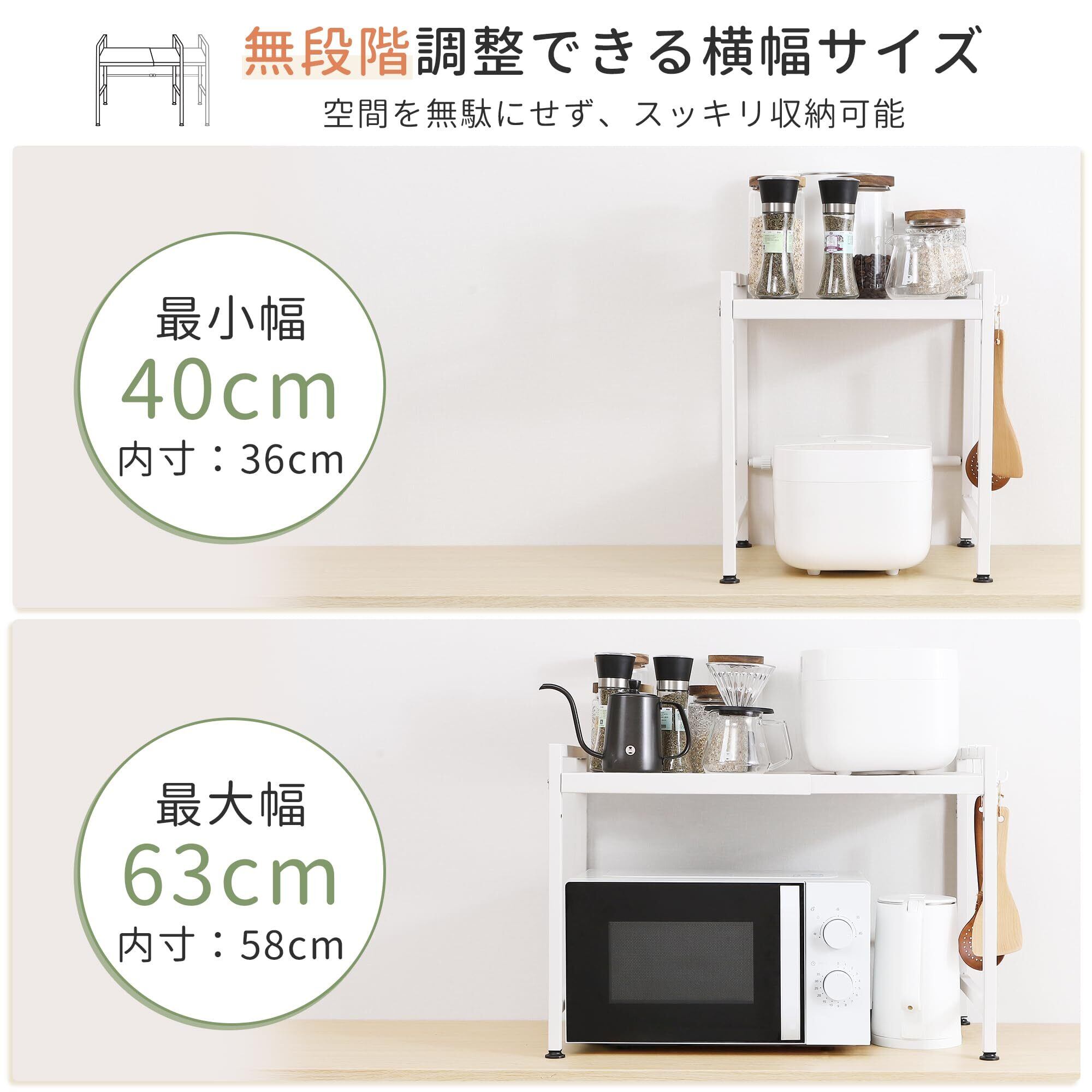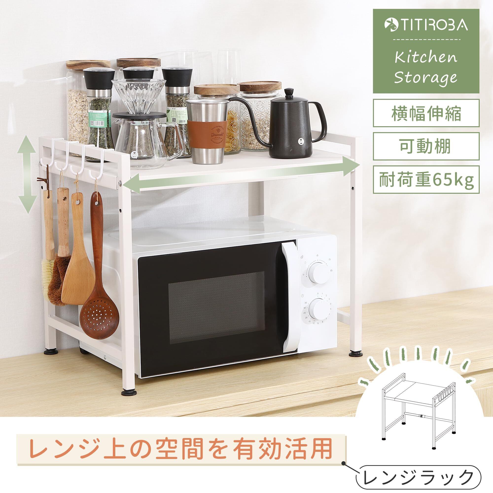 【 限定】 チチロバ(Titiroba) (TITIROBA) レンジラック 伸縮式 幅40-63cm レンジ上ラック トースターラック キッチンラック 高さ調節可 耐荷重65kg ホワイト 22CA004