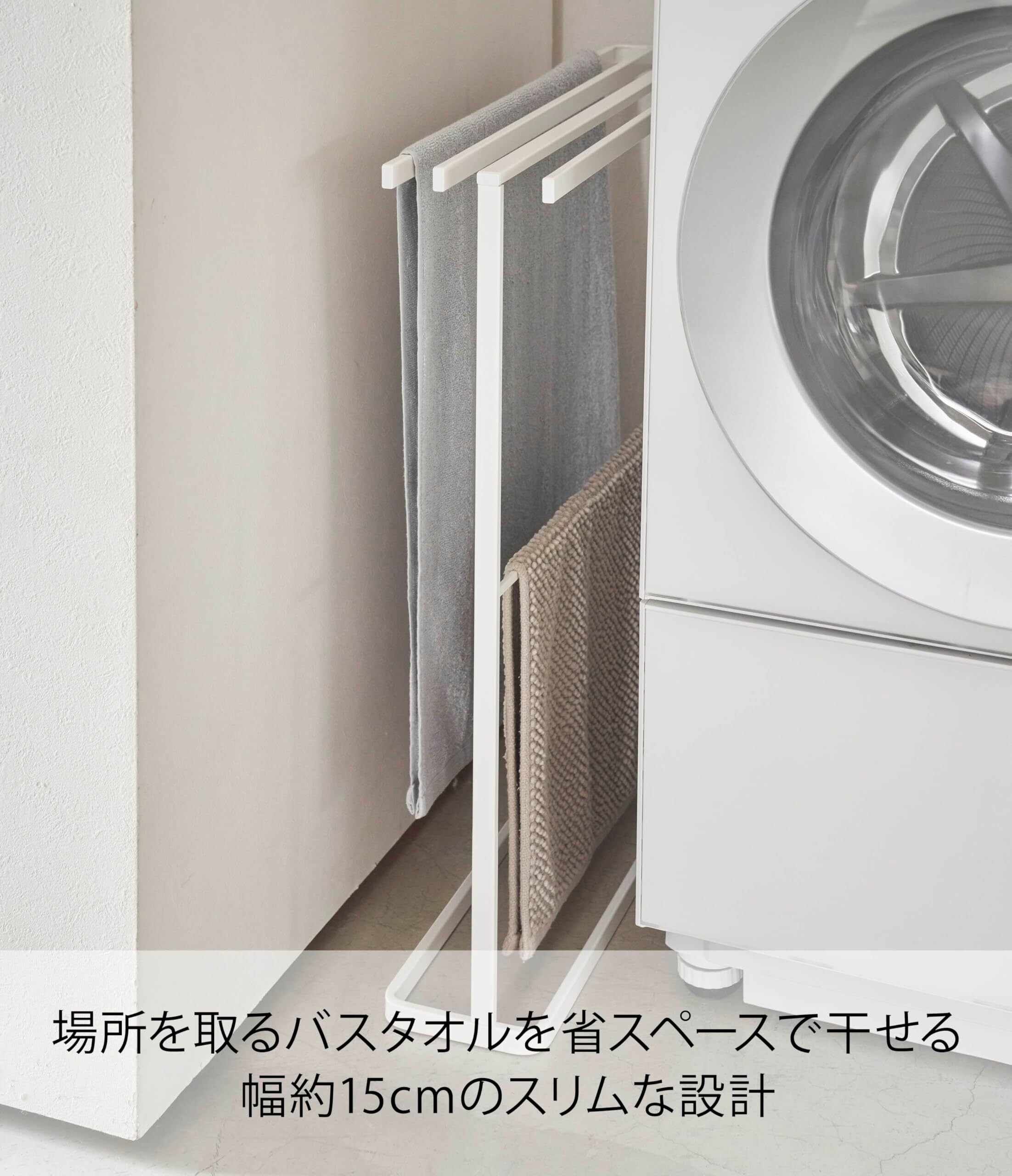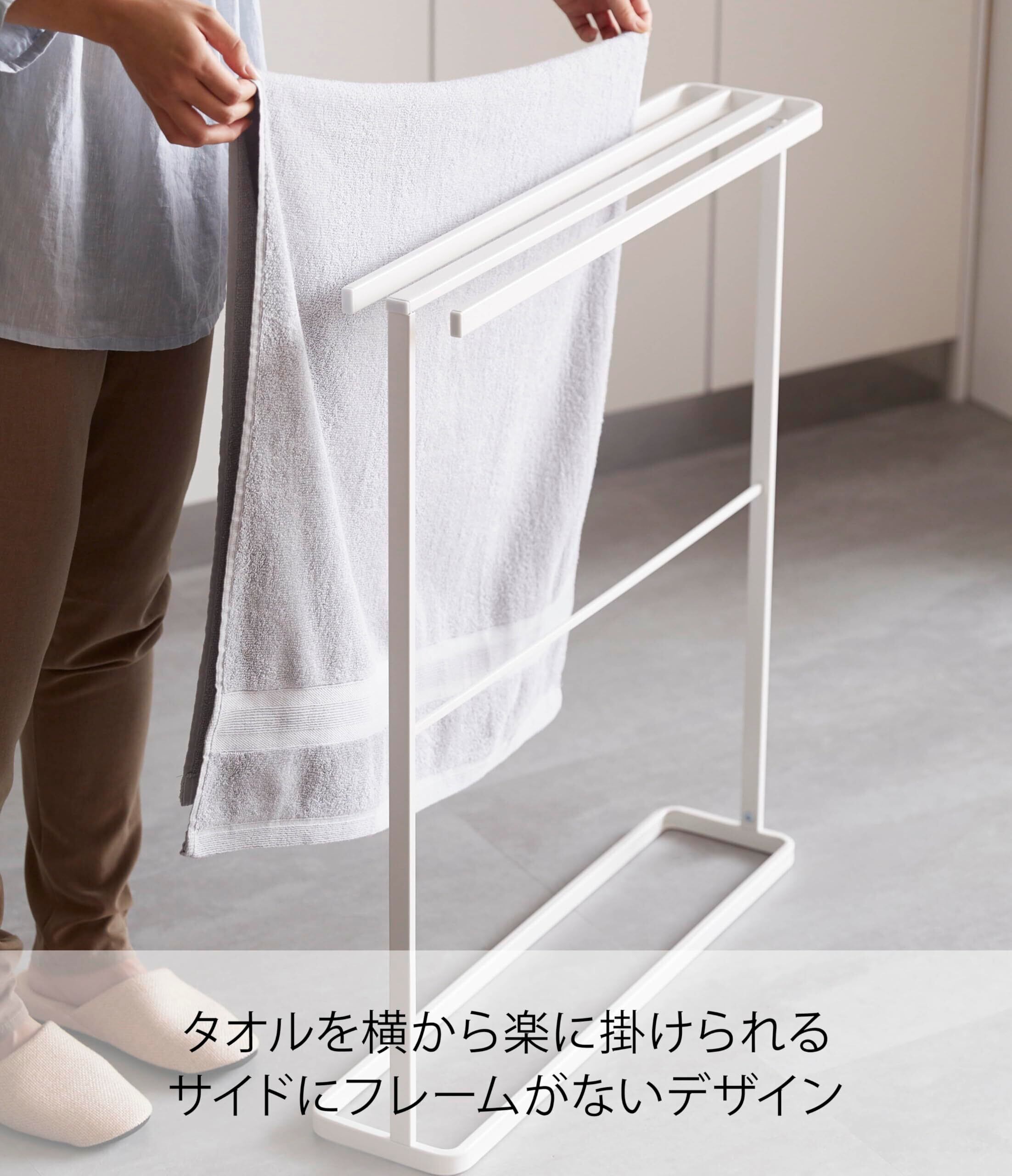 山崎実業(Yamazaki) 横から掛けられる バスタオルハンガー スリム ホワイト 約W65XD15XH75cm タワー tower タオルハンガー 物干し 5576