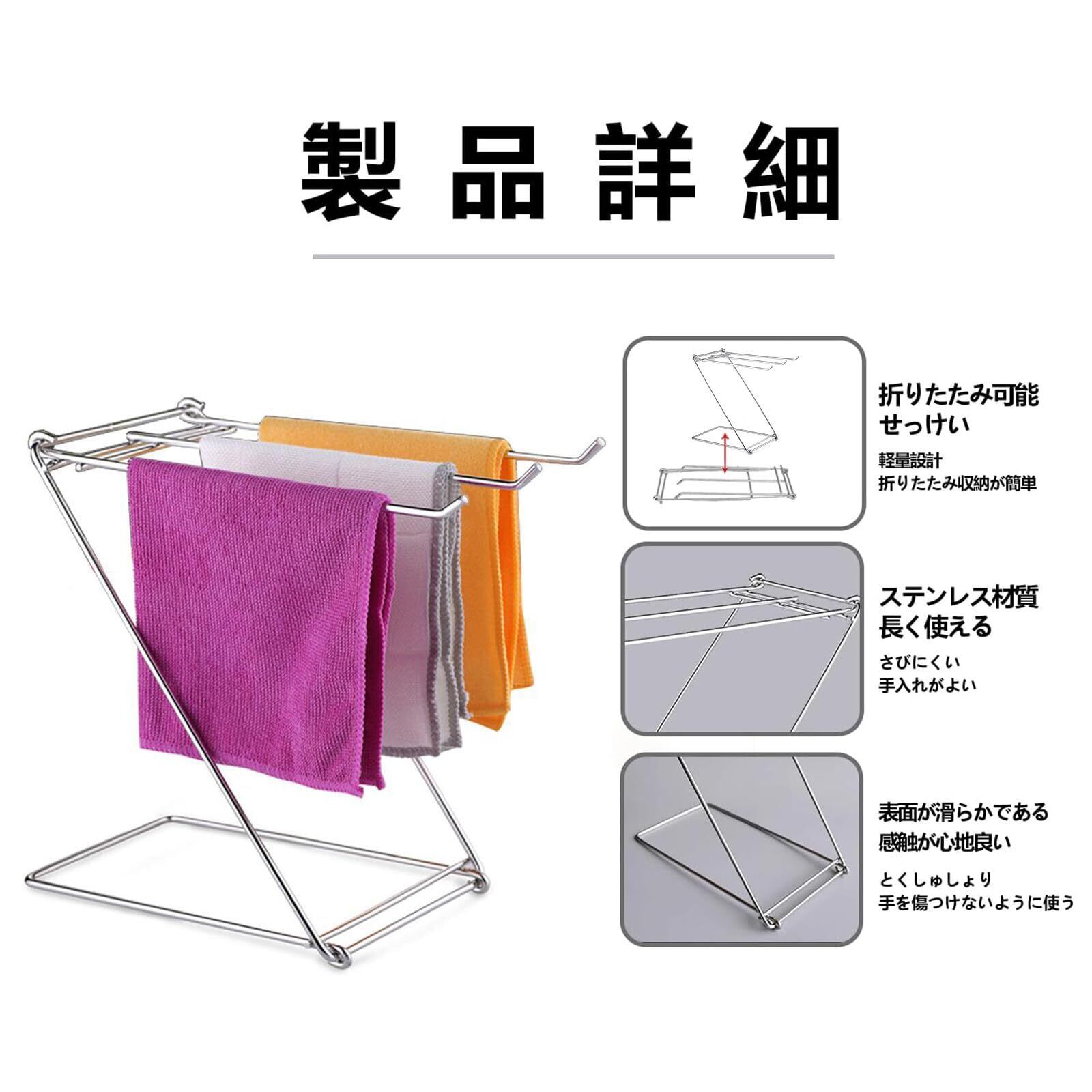 JYSFOVRLV 布巾掛け ふきん タオル掛け ステンレス製 折りたたみ 小型 軽量 キッチン用品 キッチン収納 (StyleA)