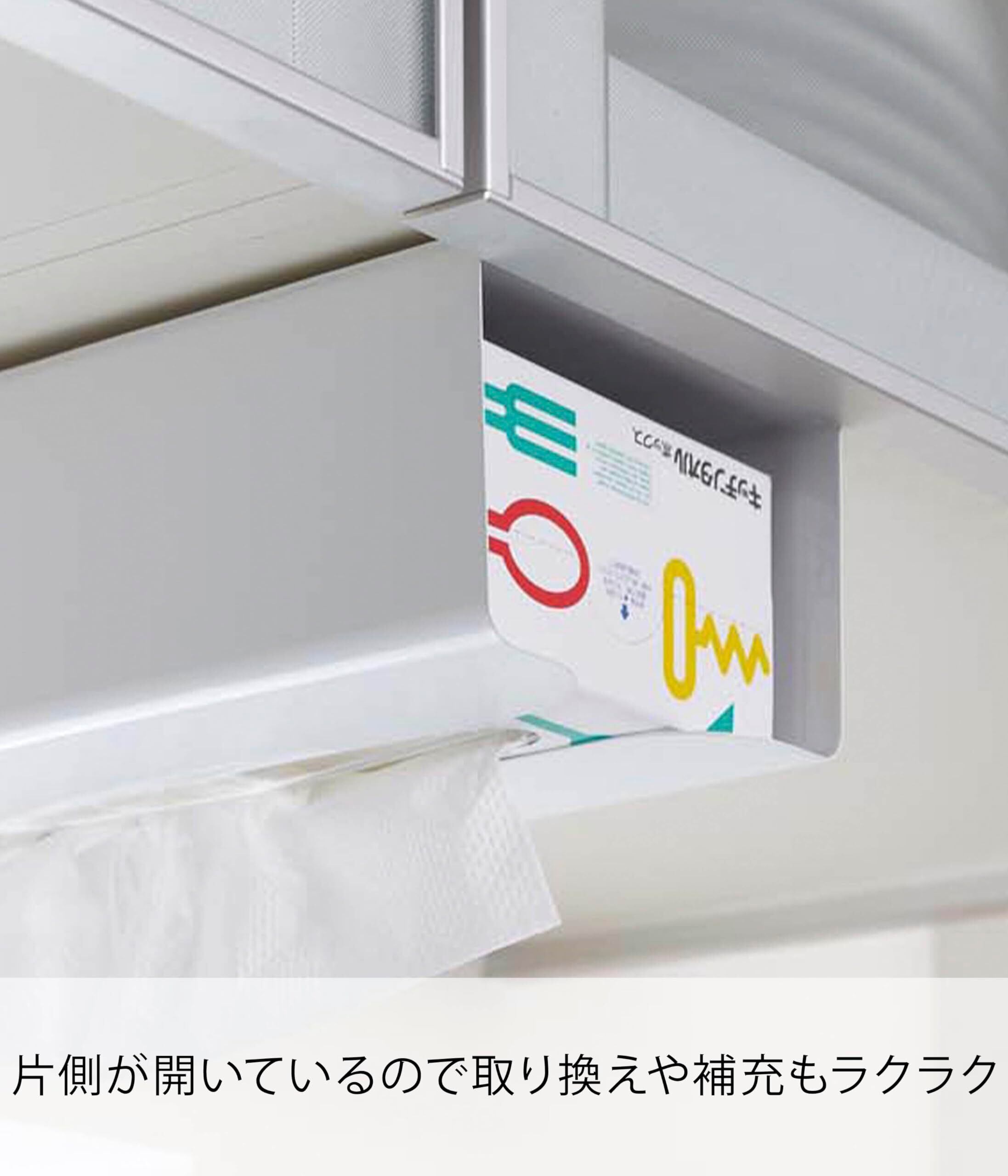 ボックスタイプのキッチンペーパーやティッシュボックスも収納可能