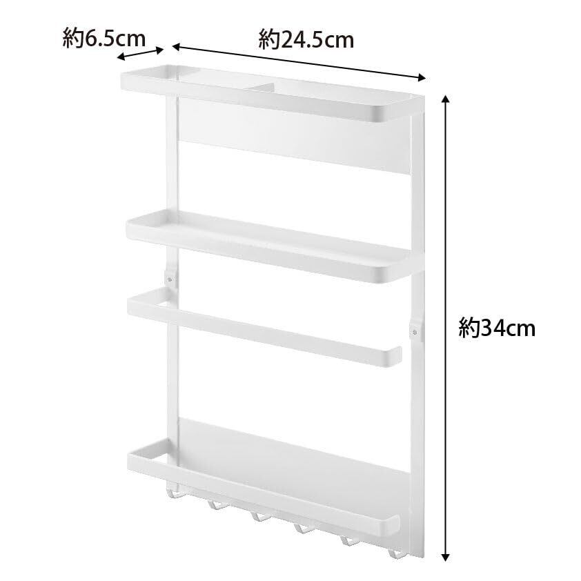 山崎実業(Yamazaki) マグネット 冷蔵庫サイドラック ホワイト 約W24.5×D6.5×H34cm プレート Plate キッチンラック キッチンペーパーホルダー 2907