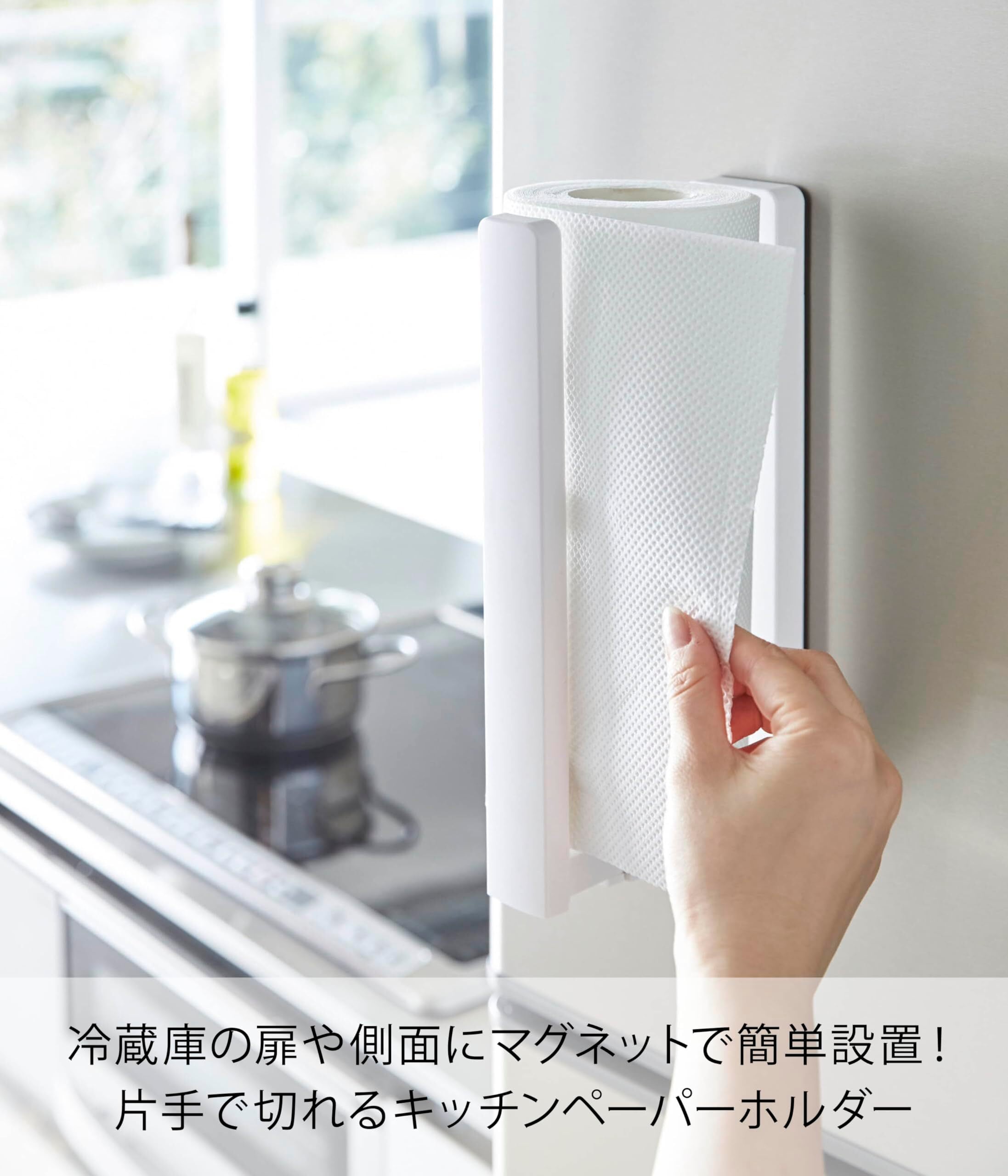 山崎実業(Yamazaki) ストッパー付 マグネット キッチンペーパーホルダー ホワイト 約W5×D10.2~17.5×H24.5cm タワー tower 片手で切れる 3398