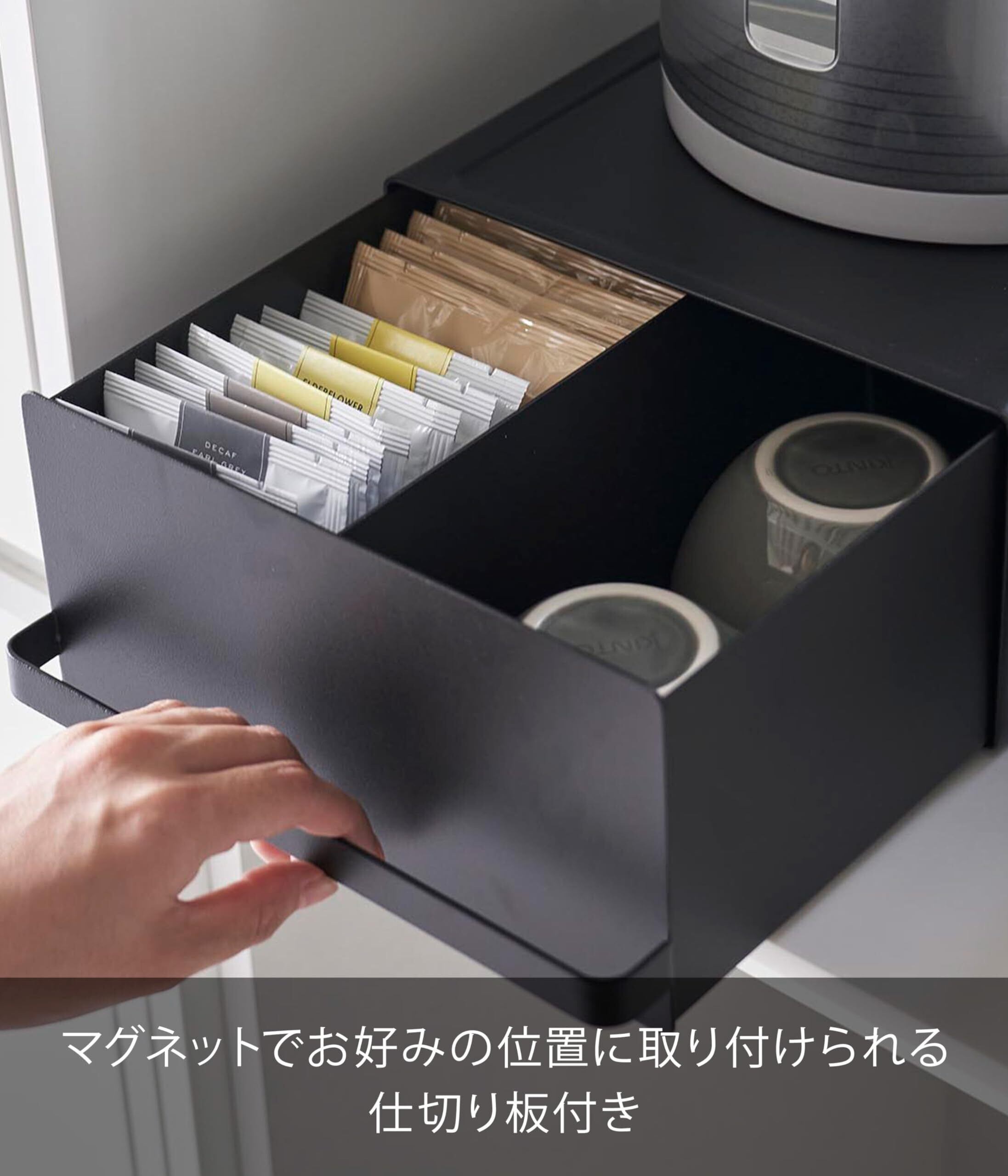 引き出しの中にシュガーや紅茶パックなどを一括収納できます。