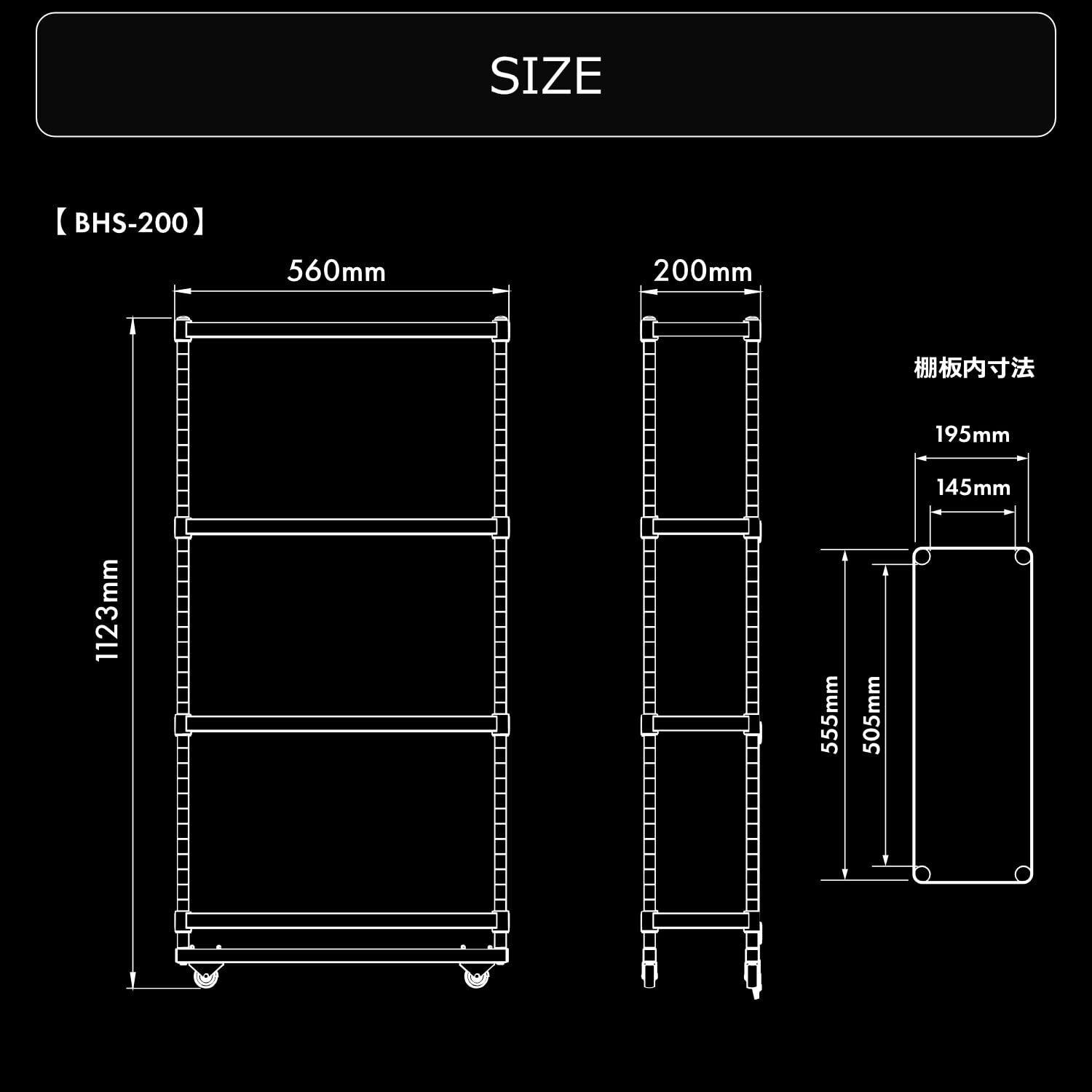 Bauhutte ( バウヒュッテ ) スリム ボトルラック ラージ BHS-200-BK キッチンワゴン 隙間収納 幅 20cm タイプ