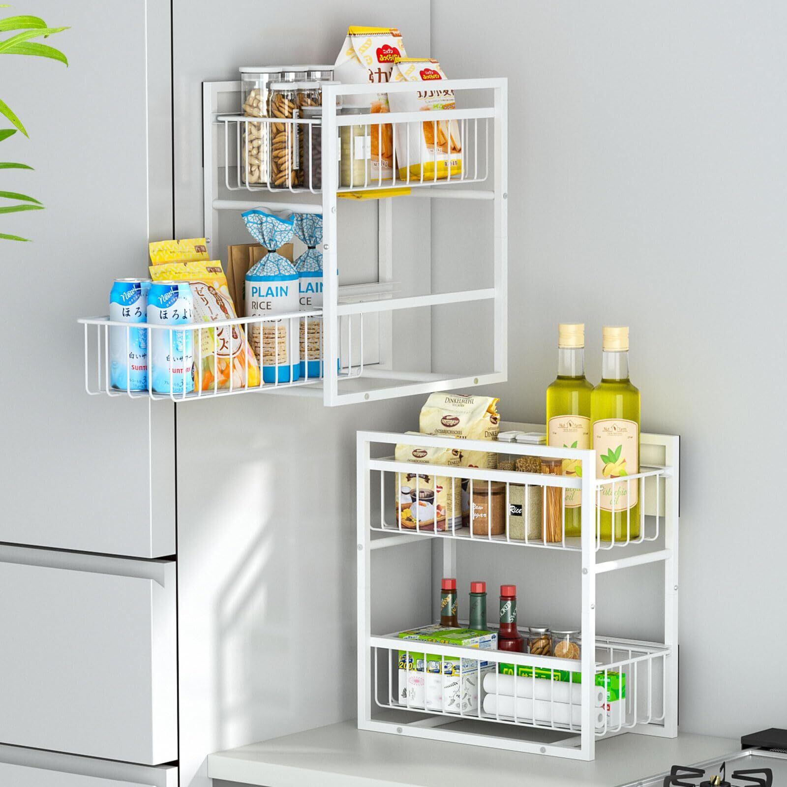 DAIWIN【耐荷重40kg・2Way置き】キッチン マグネット 収納 2段 引き出しラック 冷蔵庫サイドラック 洗濯機横 収納 マグネット 隙間収納 大容量 自立 置き型 磁石 スパイスラック マグネット 調味料ラック ランドリー 玄関 浴室 省スペース コンロ横 キッチンラック
