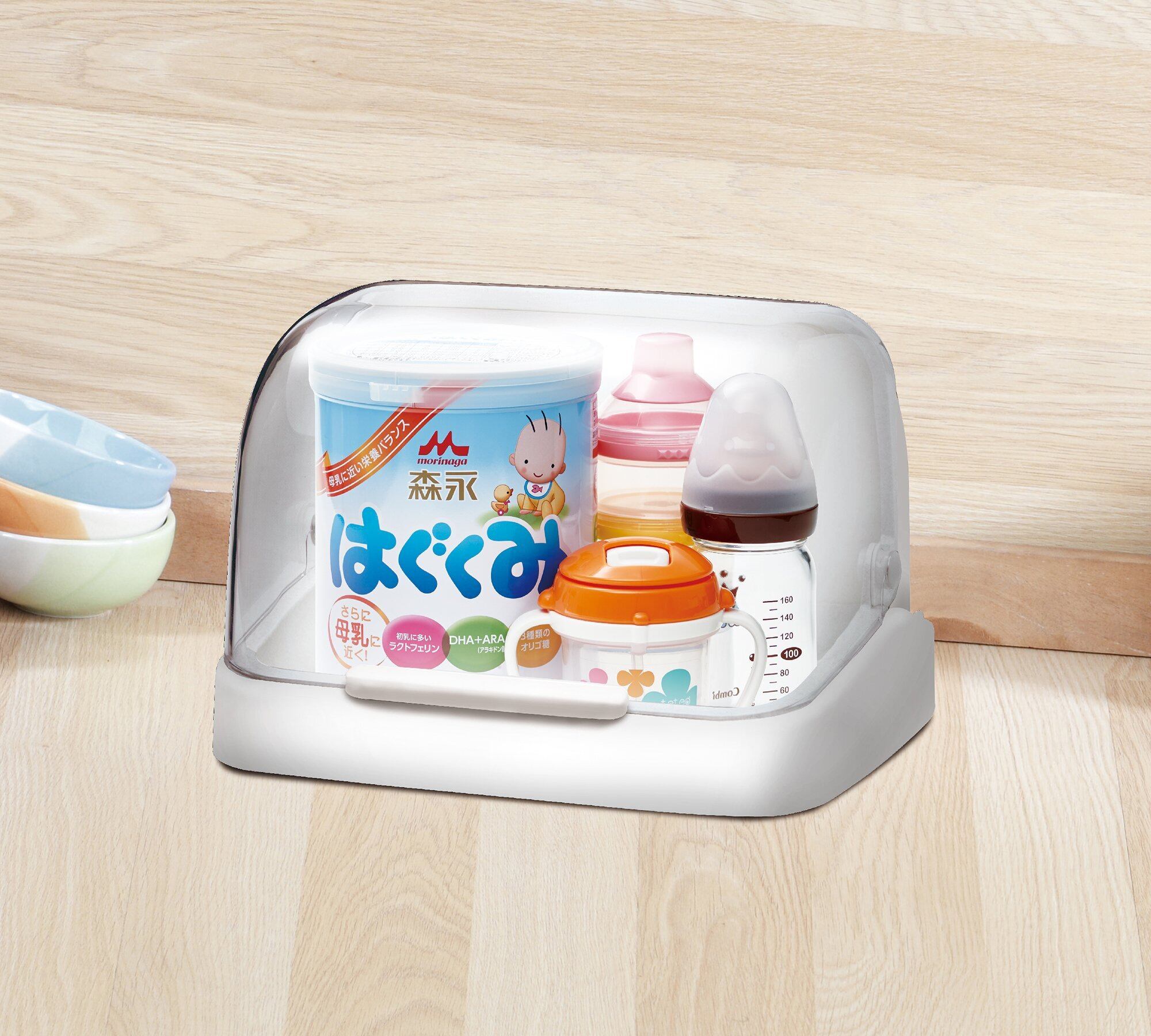 ●虫やホコリをシャットアウトし、清潔に保てるので哺乳瓶など赤ちゃんの衛生用品や調味料などの収納に最適。