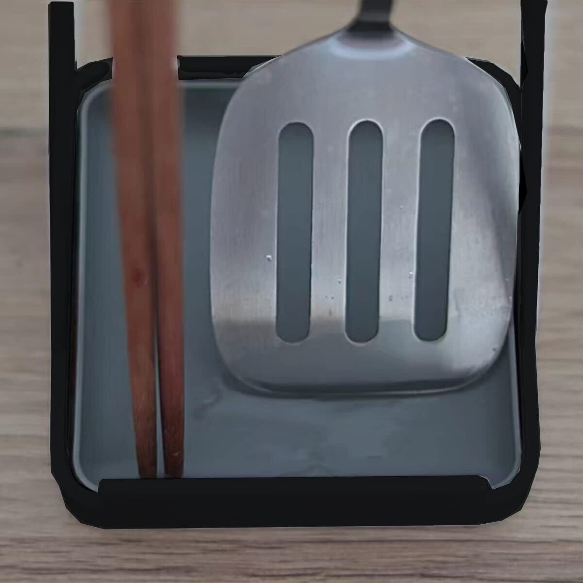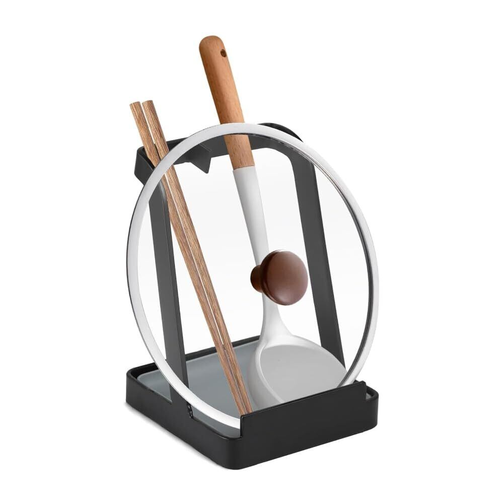 Liebbon お玉 蓋置きスタンド|鍋蓋置き・菜箸・包丁・しゃもじ対応|水切りトレー付き 多機能 調理器具立て (ブラック)