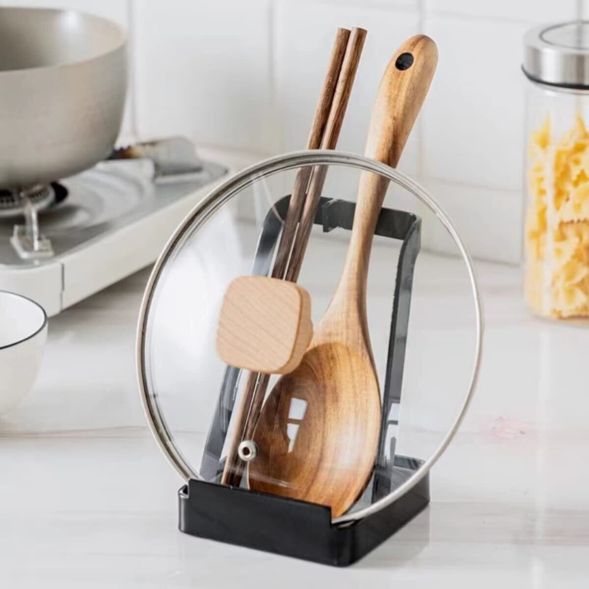 【多機能収納スタンド】お玉、鍋蓋、菜箸、しゃもじ、包丁、まな板などの調理器具を一括で収納できる万能スタンド。キッチンの整理整頓に最適。