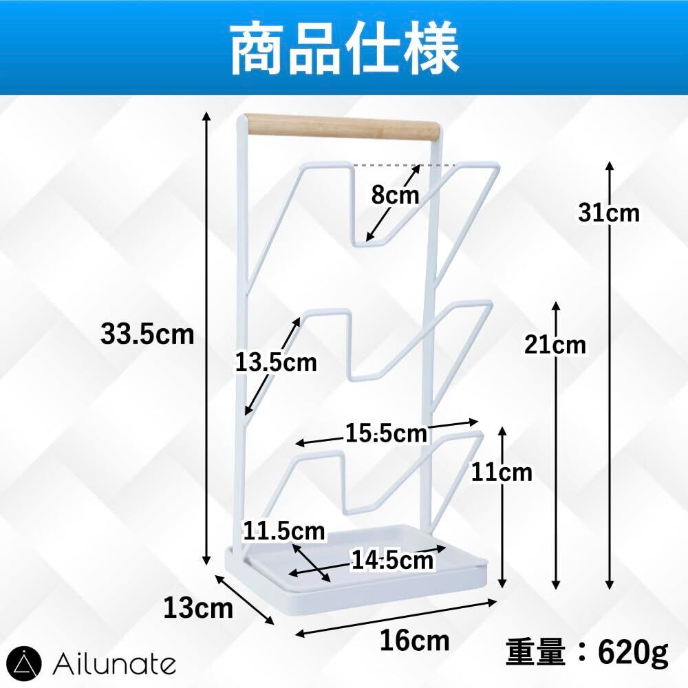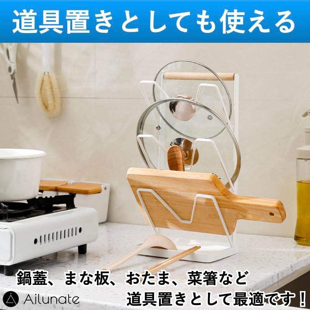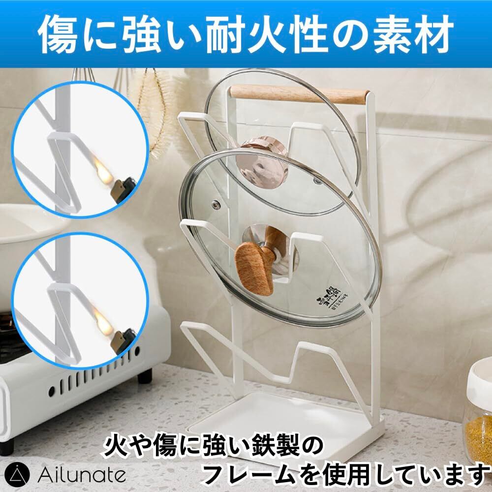 Ailunate 鍋蓋スタンド 鍋ぶた なべぶた スタンド ホルダー 蓋立て お玉立て おたま 鍋蓋置き 鍋ふた 蓋置き まな板 収納 自立 3段