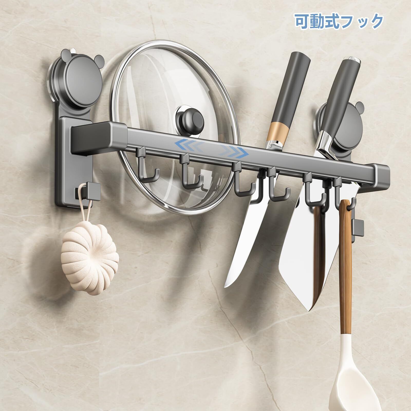 【多機能収納】の吸盤フック 超強力はスポンジとお玉だけではなく、包丁、鍋の蓋にも綺麗に収納できます。キッチン用品を収納して、キッチンをきれいに保ちます。