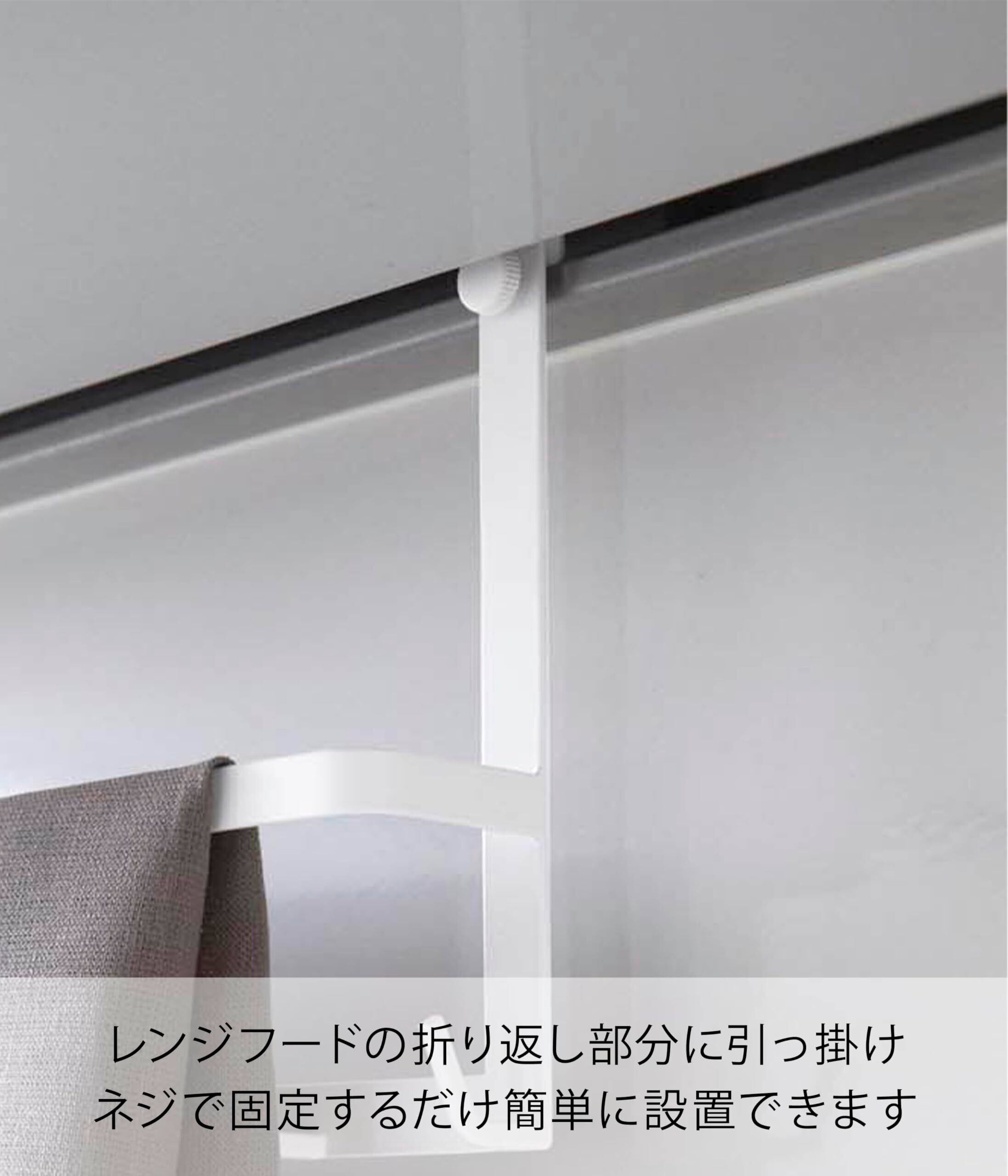 レンジフードに引っ掛けるだけでキッチンツールの収納スペースに
