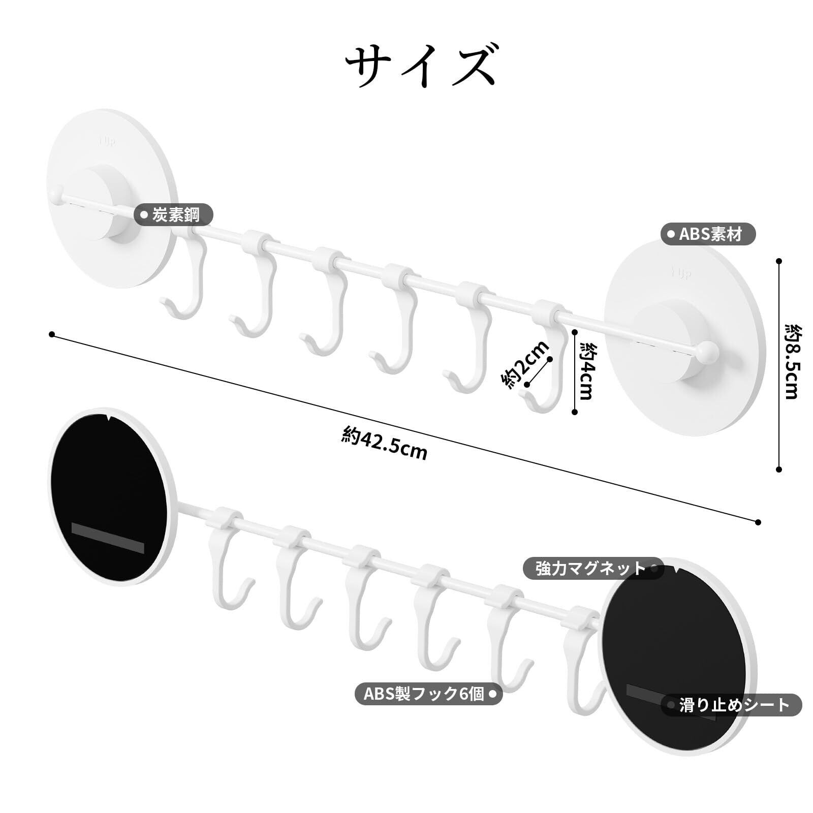 サイズ:幅42.5cm×奥行2.5cm×高さ8.5cm;取り付け方法:マグネット壁掛けタイプ;素材:ABS樹脂・炭素鋼;カラー:ホワイト;耐荷重:約1kg