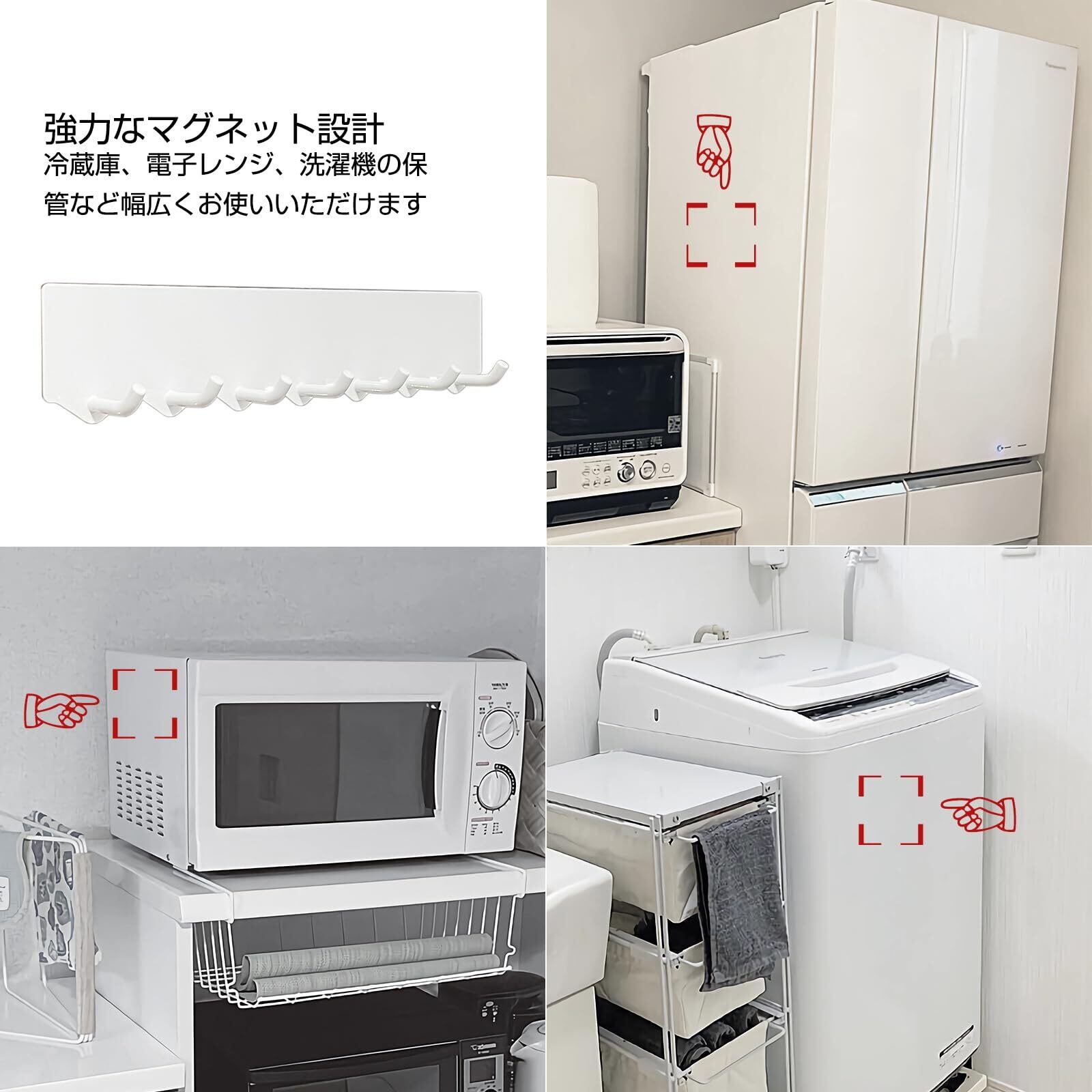 【日常生活に便利】玄関のキーフックとして使用でき、外出時に鍵を忘れることがなくなります。 キッチンで調理器具を吊るすためのキッチンツールフックとしても使用でき、ツールを清潔に保ち、簡単に取り出すことができます。 洗濯機や冷蔵庫の側面に物を掛けるのに最適です。