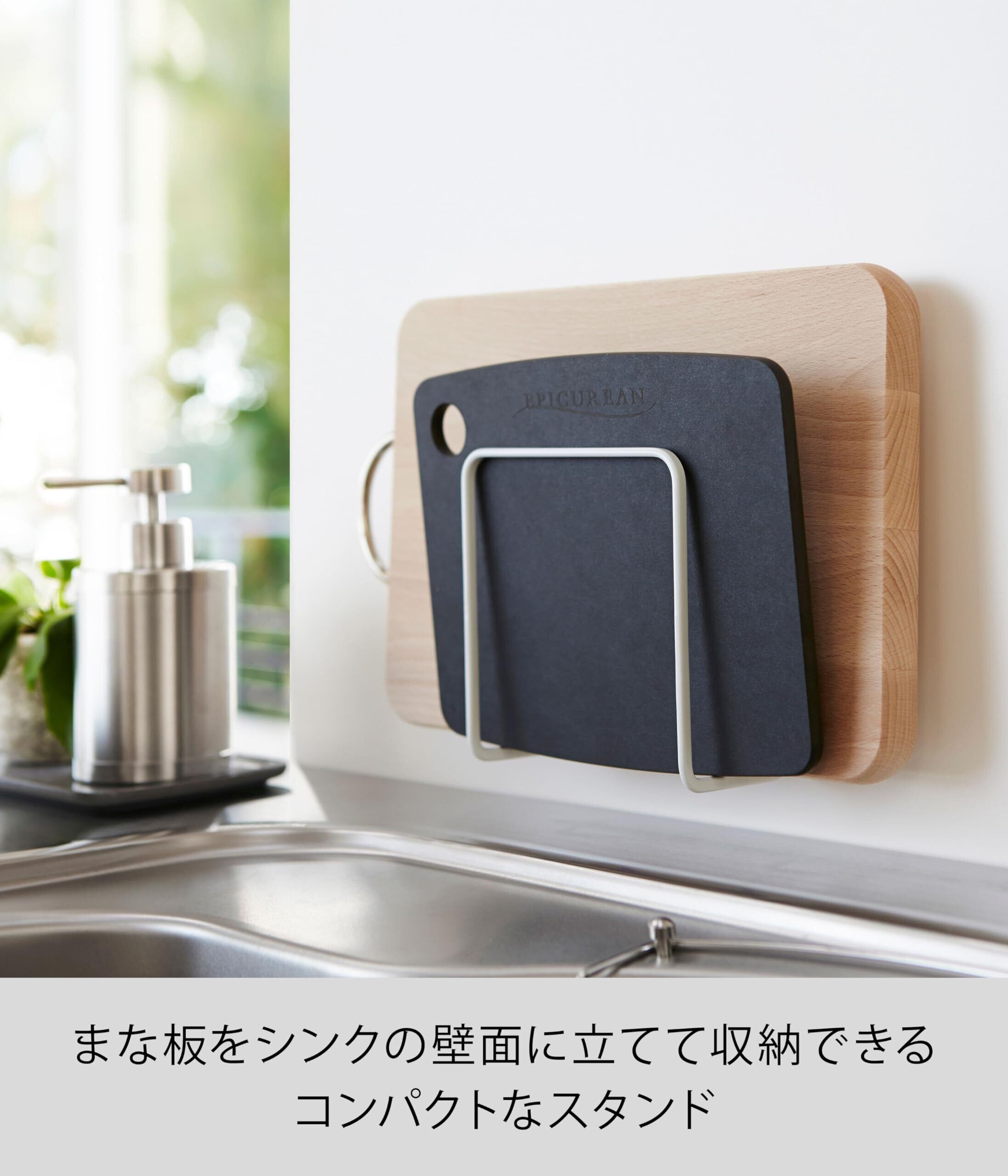 山崎実業(Yamazaki) 吸盤まな板スタンド ホワイト 約W12×D6×H12cm プレート まな板スタンド 3499