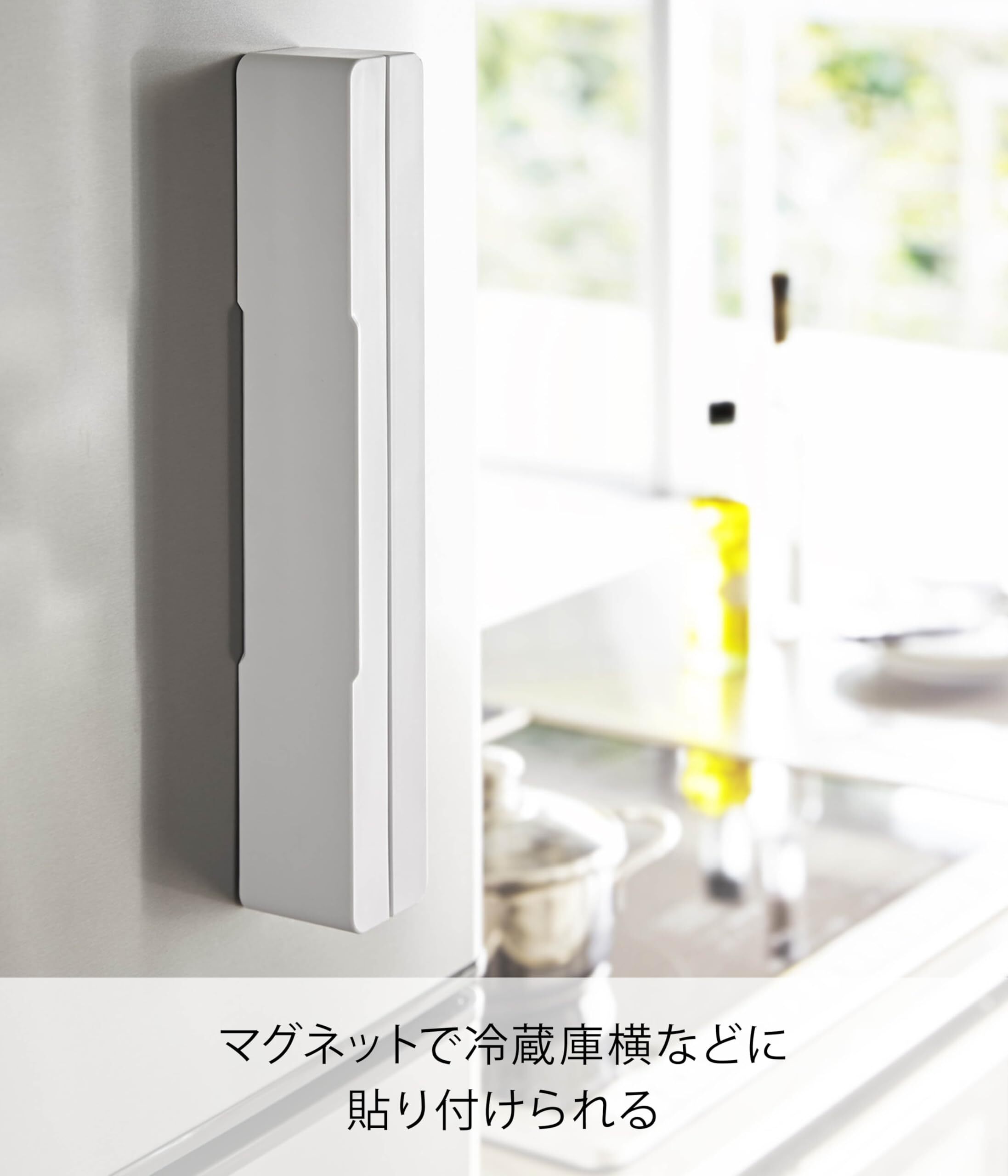 マグネットで冷蔵庫横などに貼り付けて収納できます。