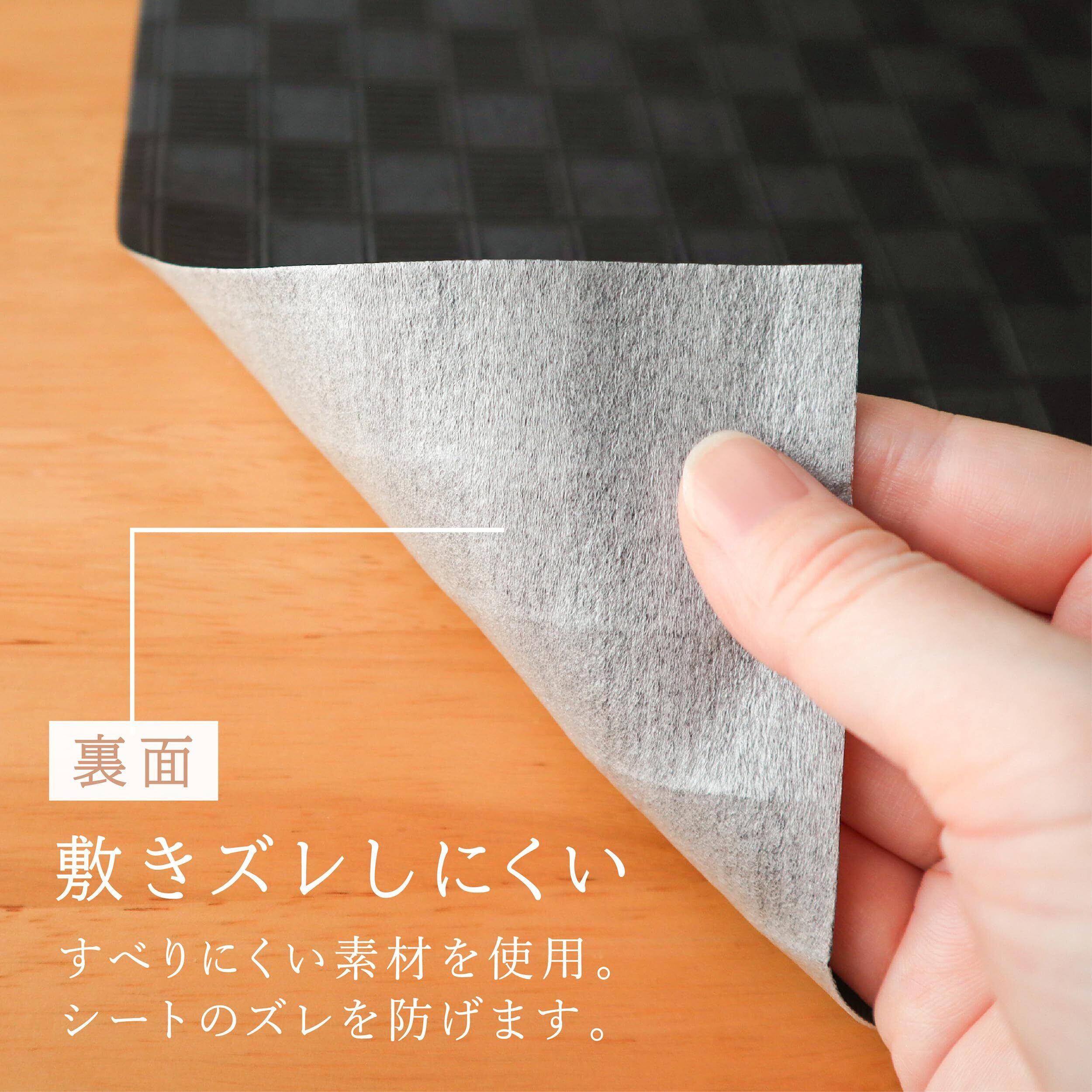 表面フィルムに竹炭粉末を配合し、裏面に滑りにくい素材を使用したシートです。