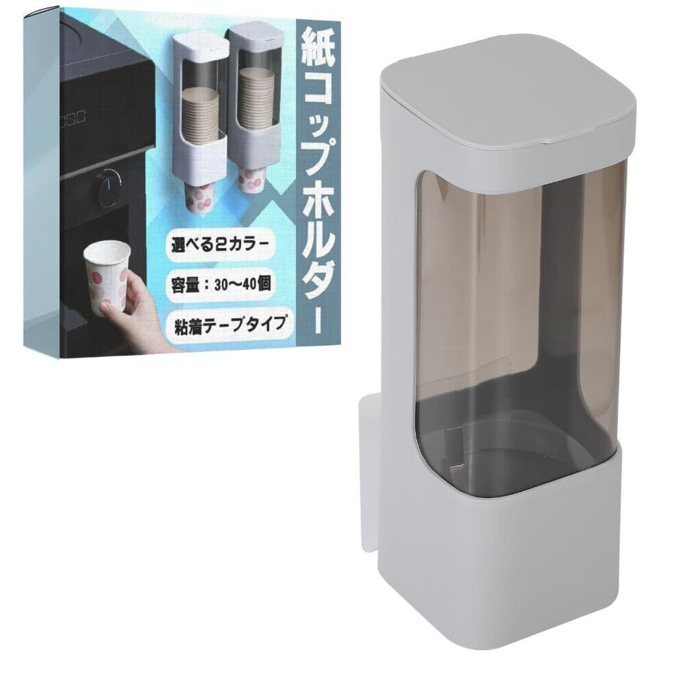 ideamall カップディスペンサー 紙コップホルダー 壁掛け 約40個収納 (グレー)