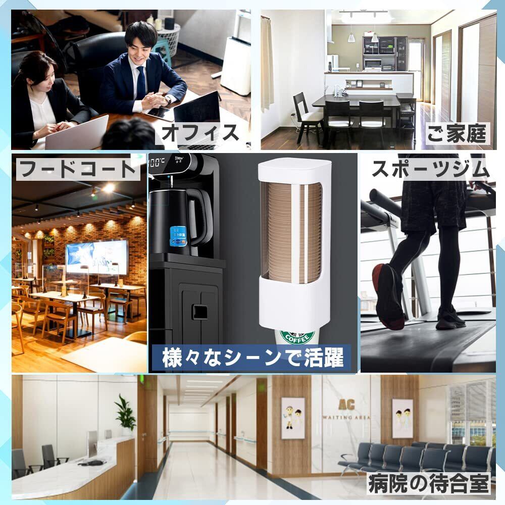 【壁掛けタイプのカップディスペンサー】両面テープで壁を傷付けることなく設置可能。カップを1つずつ取り出せます。