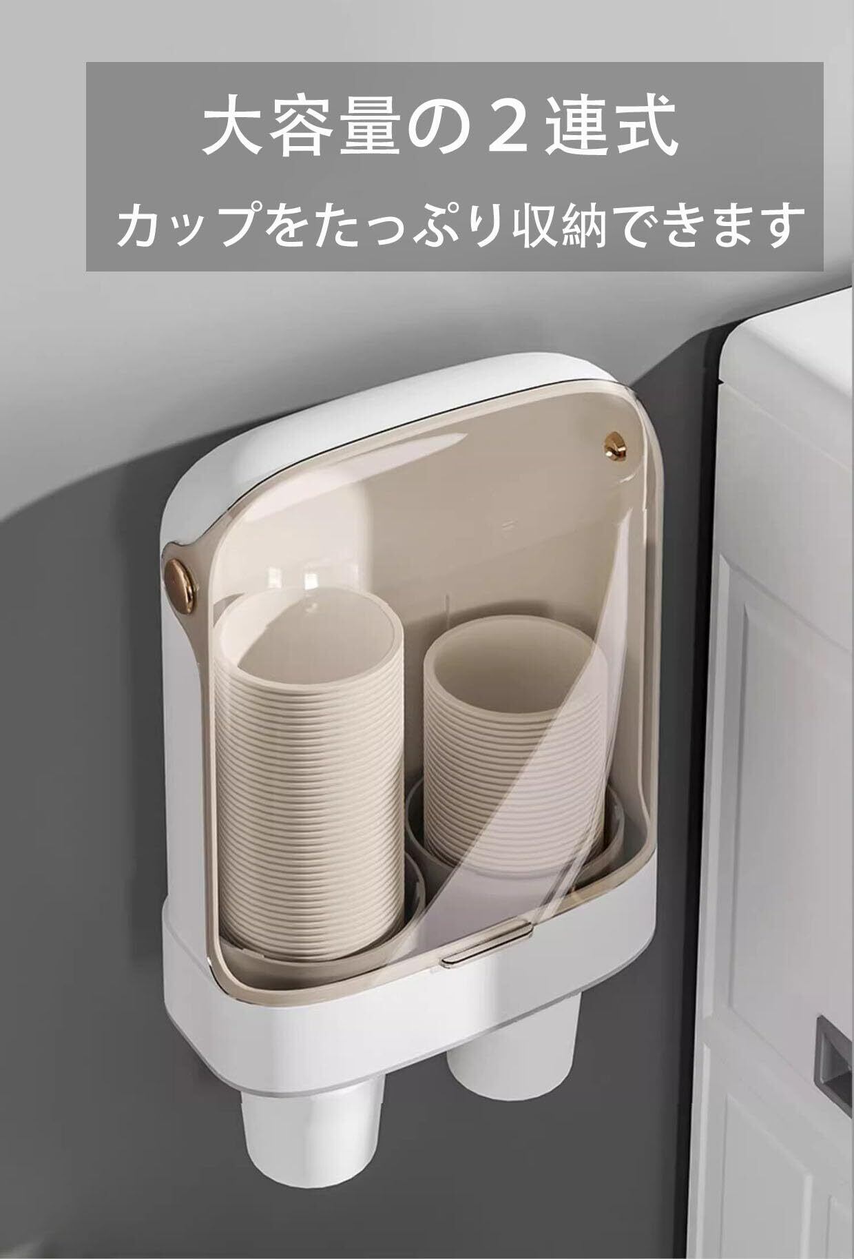 【商品の仕様】サイズ:28x9.4x10cm/素材:ABS 2連式デザインで口径5cm~7.5cmの紙コップが80個も入れる大容量のカップディスペンサーです。