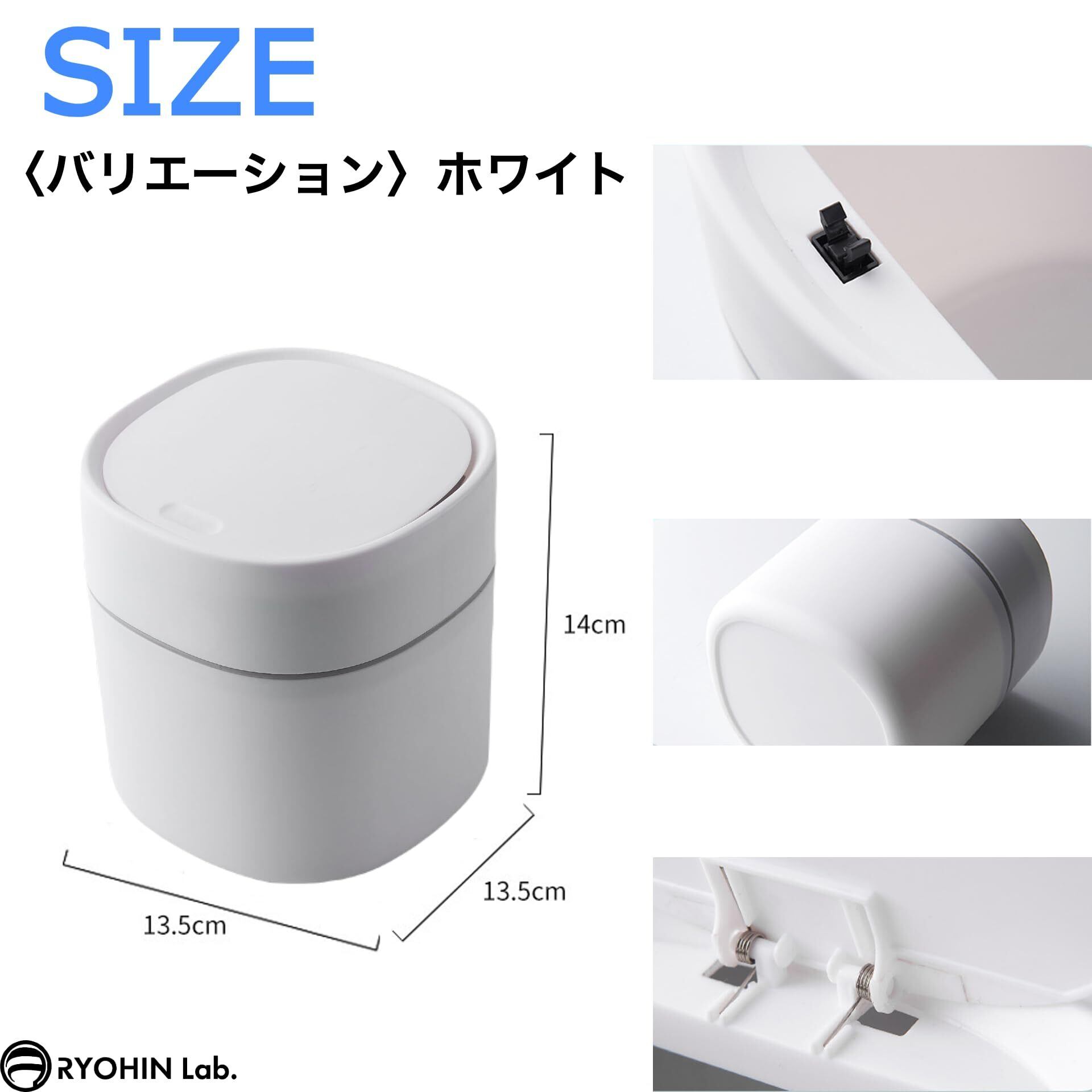 RYOHIN Lab.(良品ラボ) 卓上ゴミ箱 ふた付き スリム おしゃれ 小さい ワンプッシュで開閉 ミニダストボックス シンプル 1個 (プッシュタイプ_ホワイト)