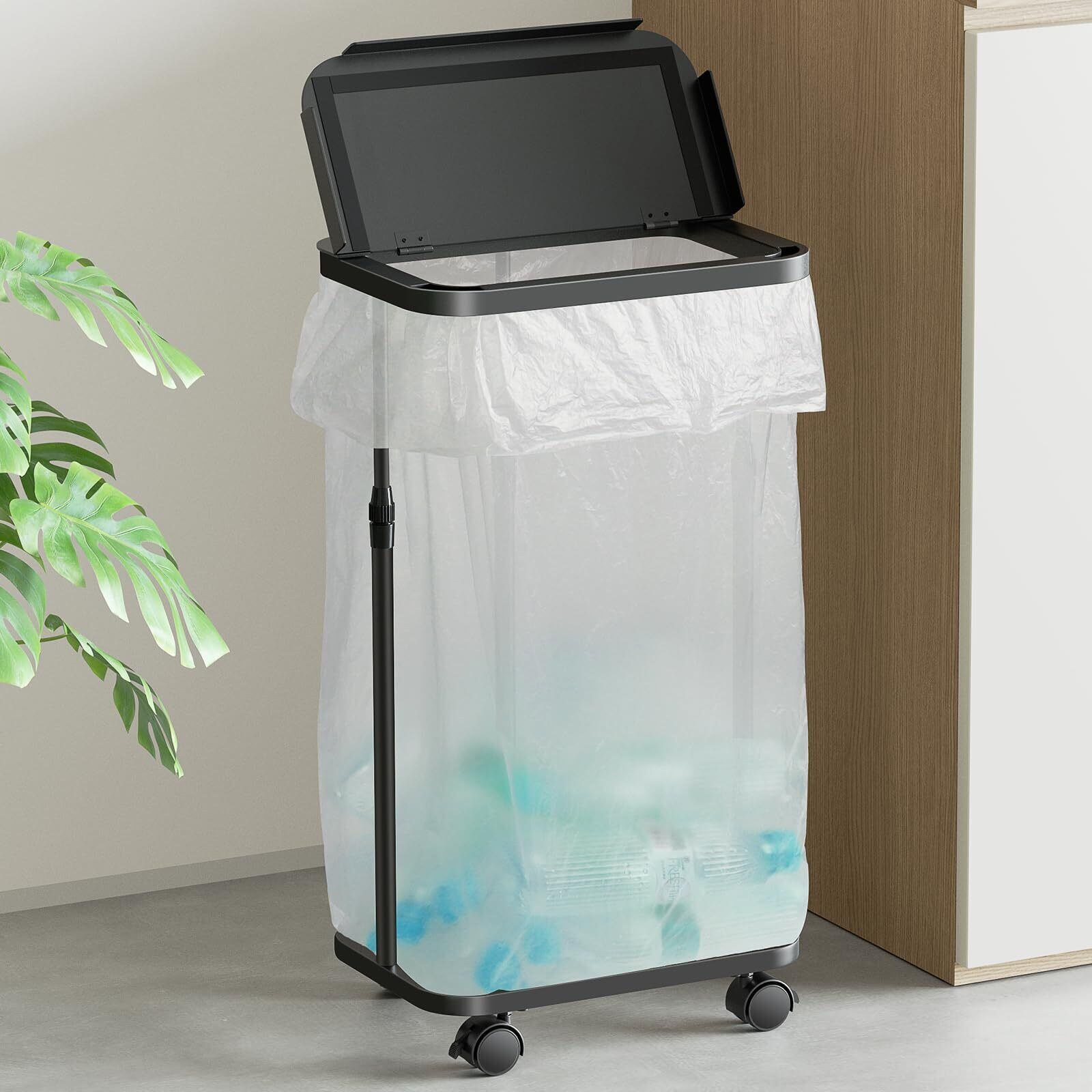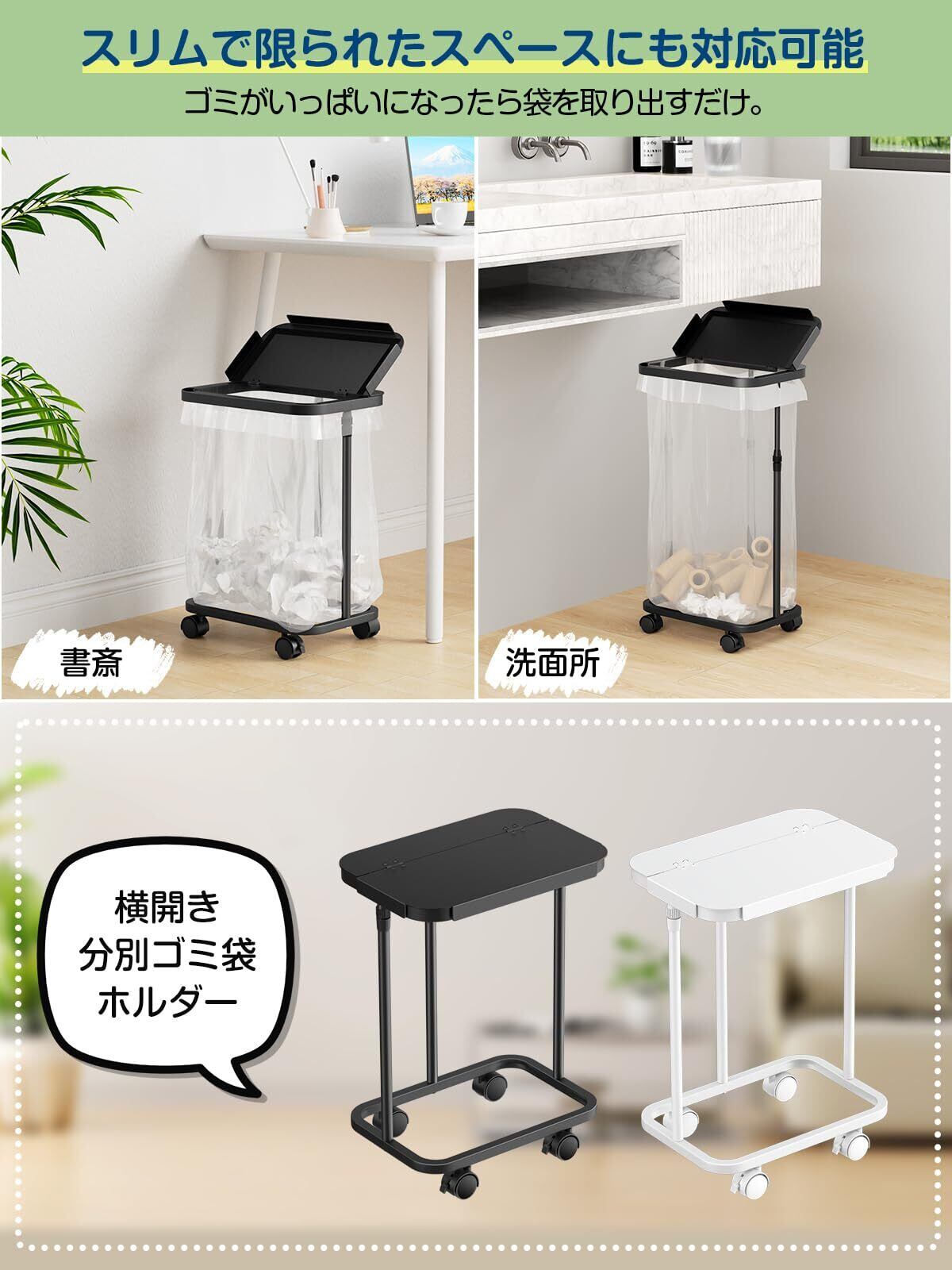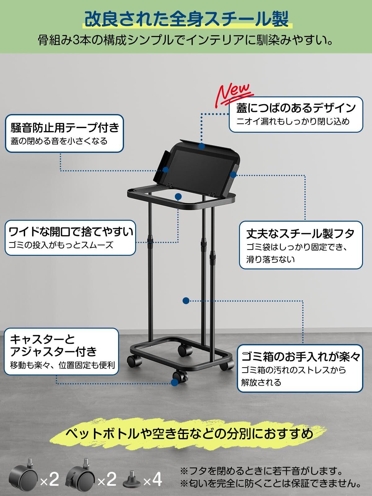 TTWO 横開きゴミ袋ホルダー ふた付き 高さ調整可20L~90L対応 ゴミ袋スタンド 分別ごみ箱 ポリ袋着脱簡単 ニオイ漏れ防止 ゴミ袋取り出しやすい キャスター・アジャスター両方付き 省スペース おしゃれ 清潔 リビング 洗面所 トイレ キッチン 塵袋ホルダー 分別ダストワゴン