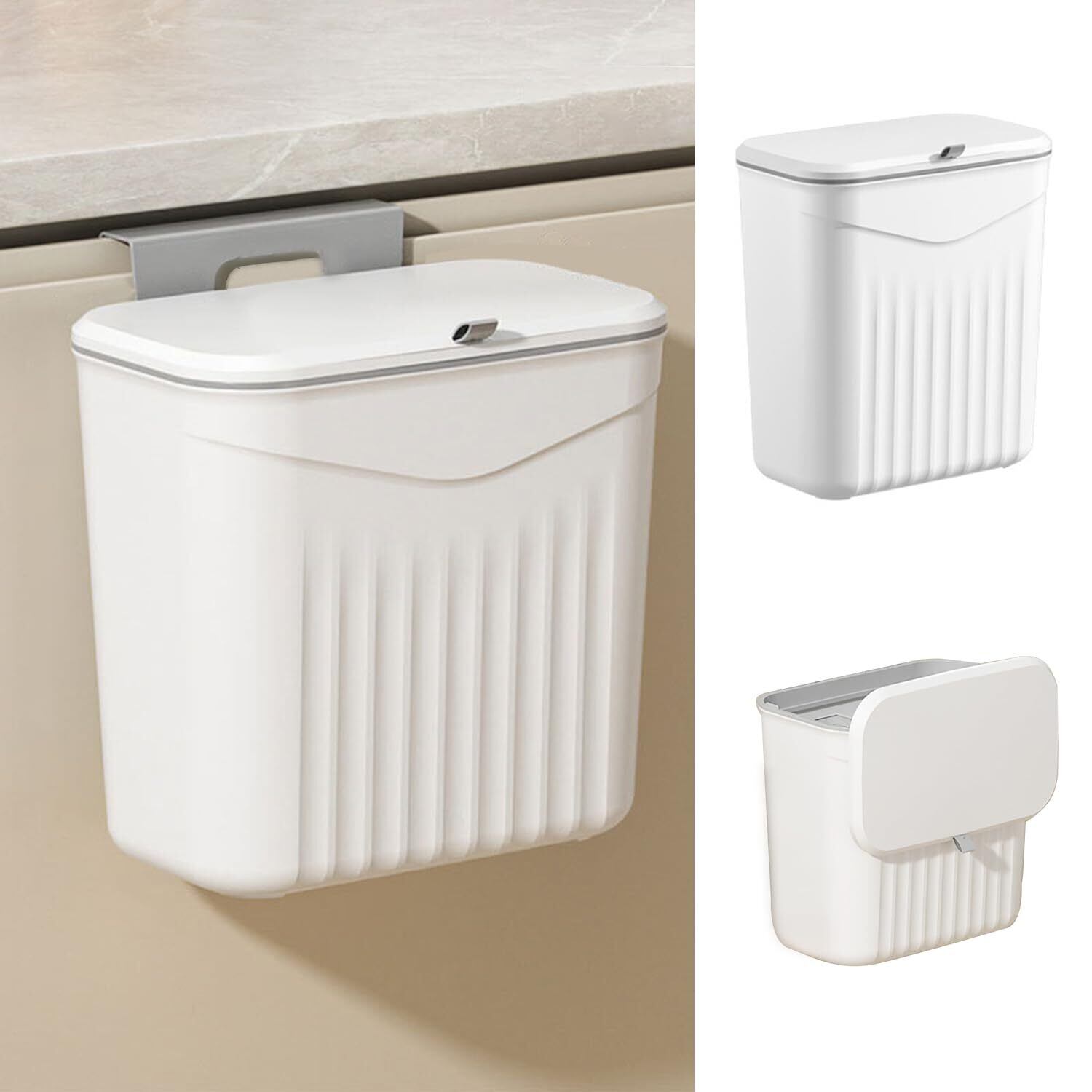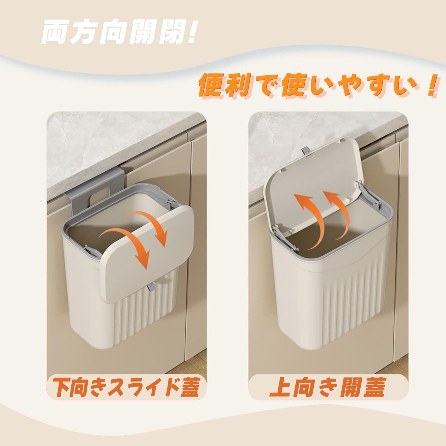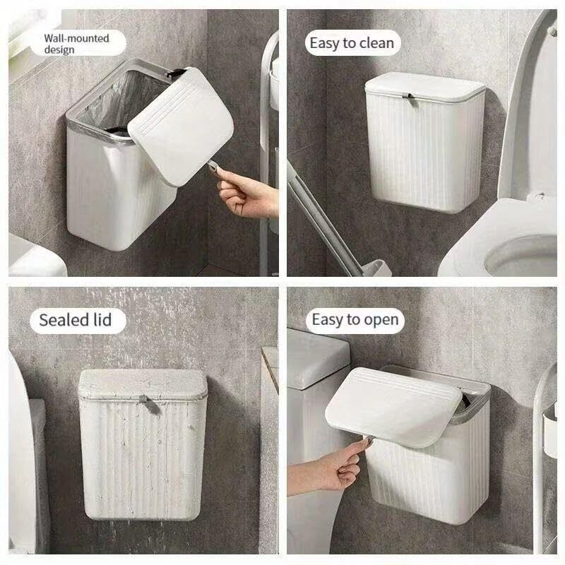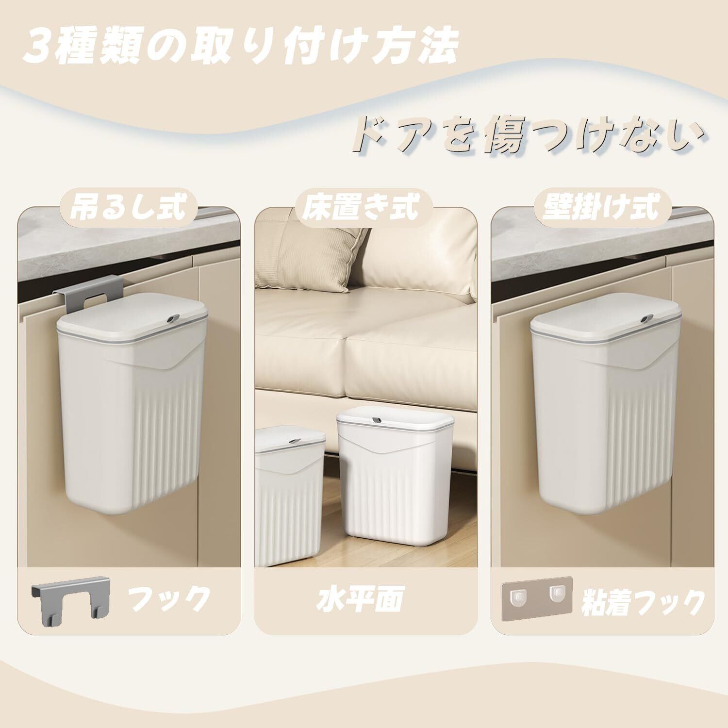 【穴あけ不要・痕残らず】Dzannc 壁掛けゴミ箱 9L 滑り蓋付き 防臭&防虫設計 強力粘着テープ設置 キッチン/トイレ/オフィス対応 グレー&ホワイト 抗菌素材 (家庭用/業務用) (アイボリー)