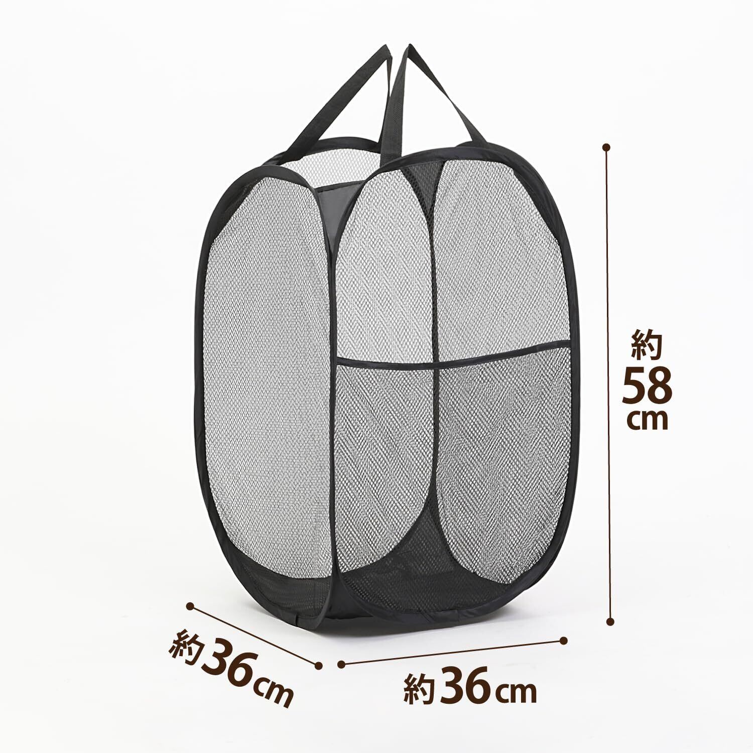 【汚れが気になった際は丸洗いが可能】:メッシュ素材なので汚れが気になっても丸洗いが可能。清潔な状態をキープできる。屋外用ごみ箱だけでなく、キャンプ用品入れ、ランドリーバスケットなどとしても使える。