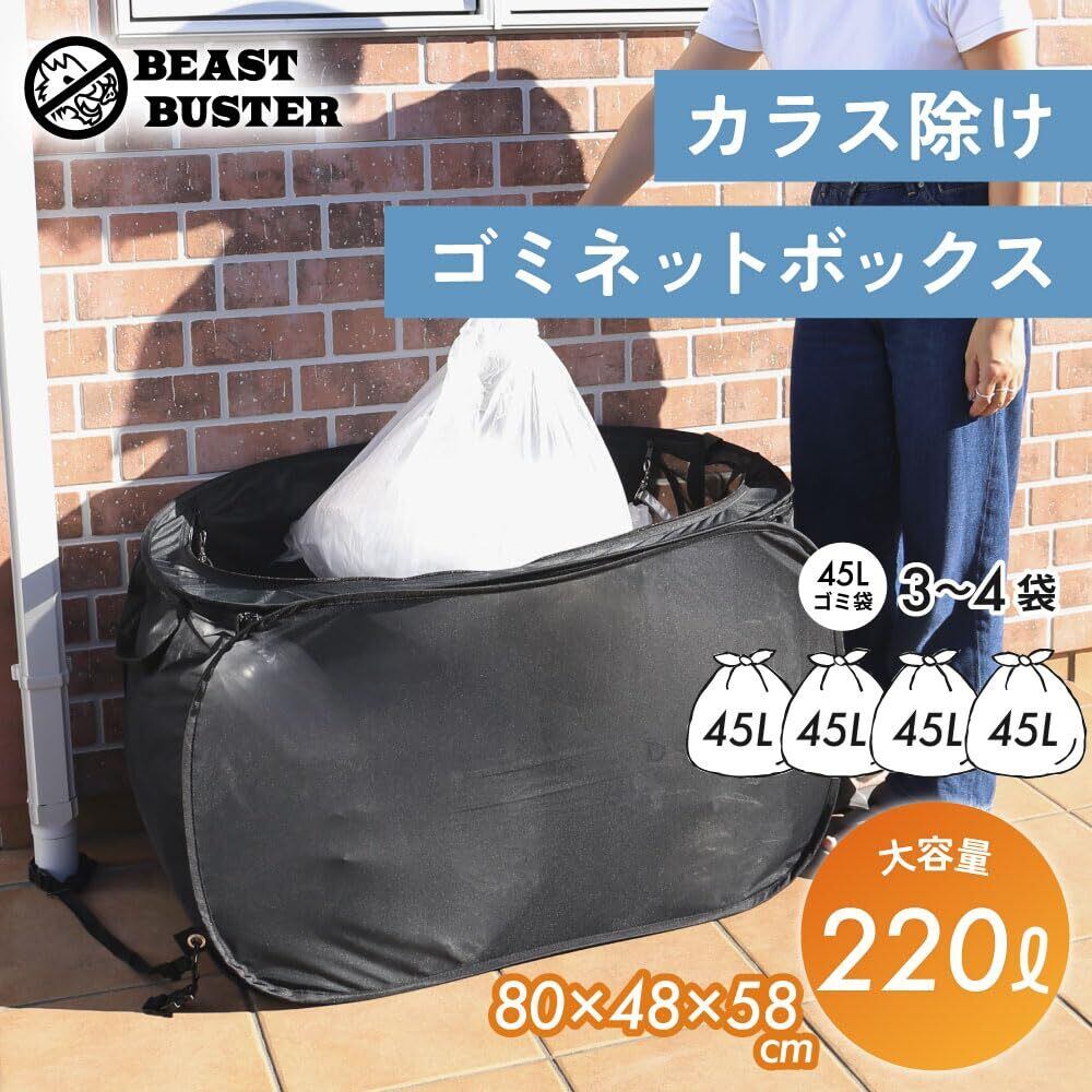 Beast Buster(ビーストバスター) カラスよけ ゴミネット ボックス カラス 鳥 猫 ゴミ箱 屋外 大容量 ネット 対策 折りたたみ 220リットル