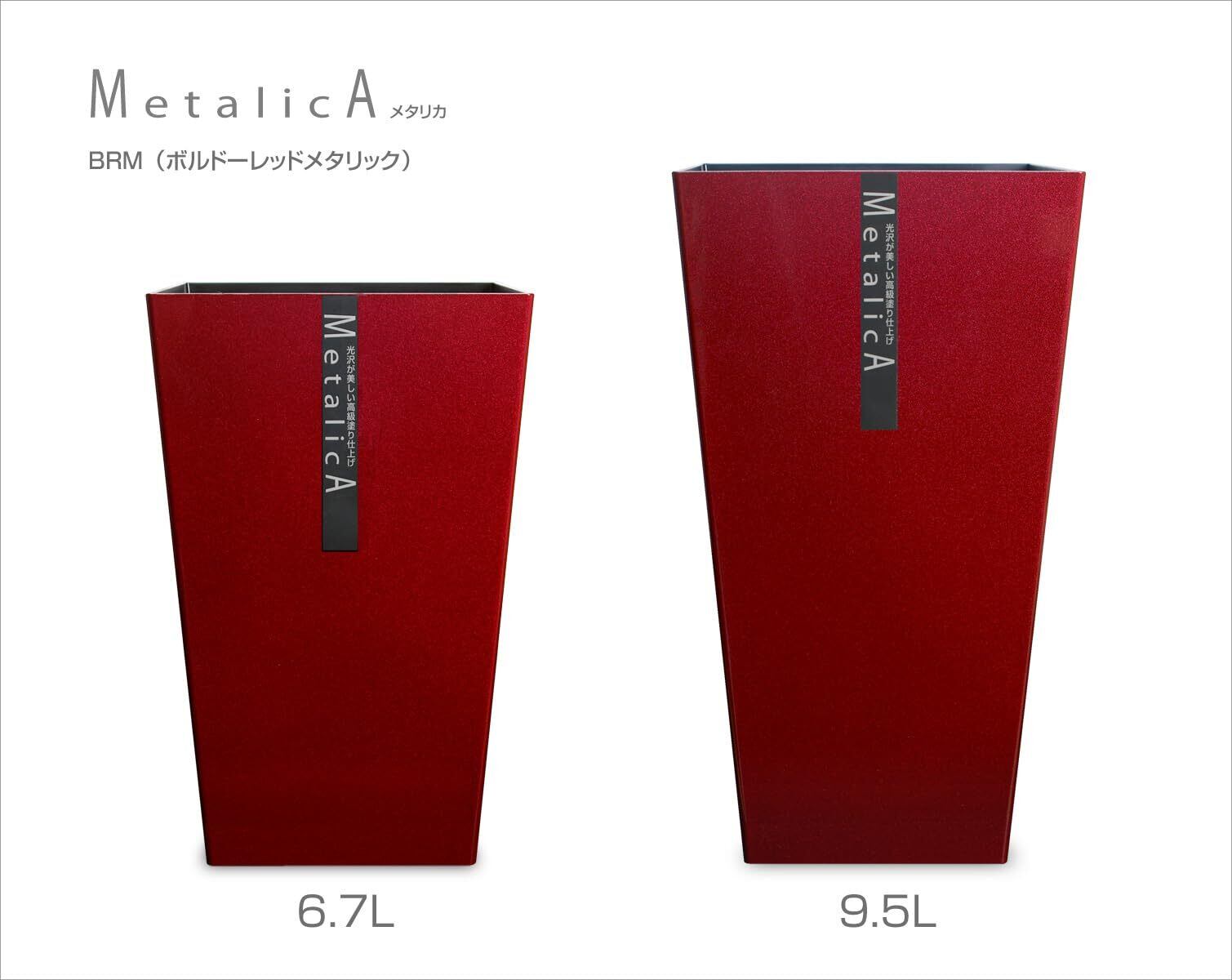TATSU-CRAFT(タツクラフト) ダストボックス メタリカ M角 メタリカ BRM ボルドー レッド 6.7L ゴミ箱 おしゃれ 屋外 ふたなし キッチン リビング スリム ペール フタなしゴミ箱 メタリック カラー インテリア 雑貨