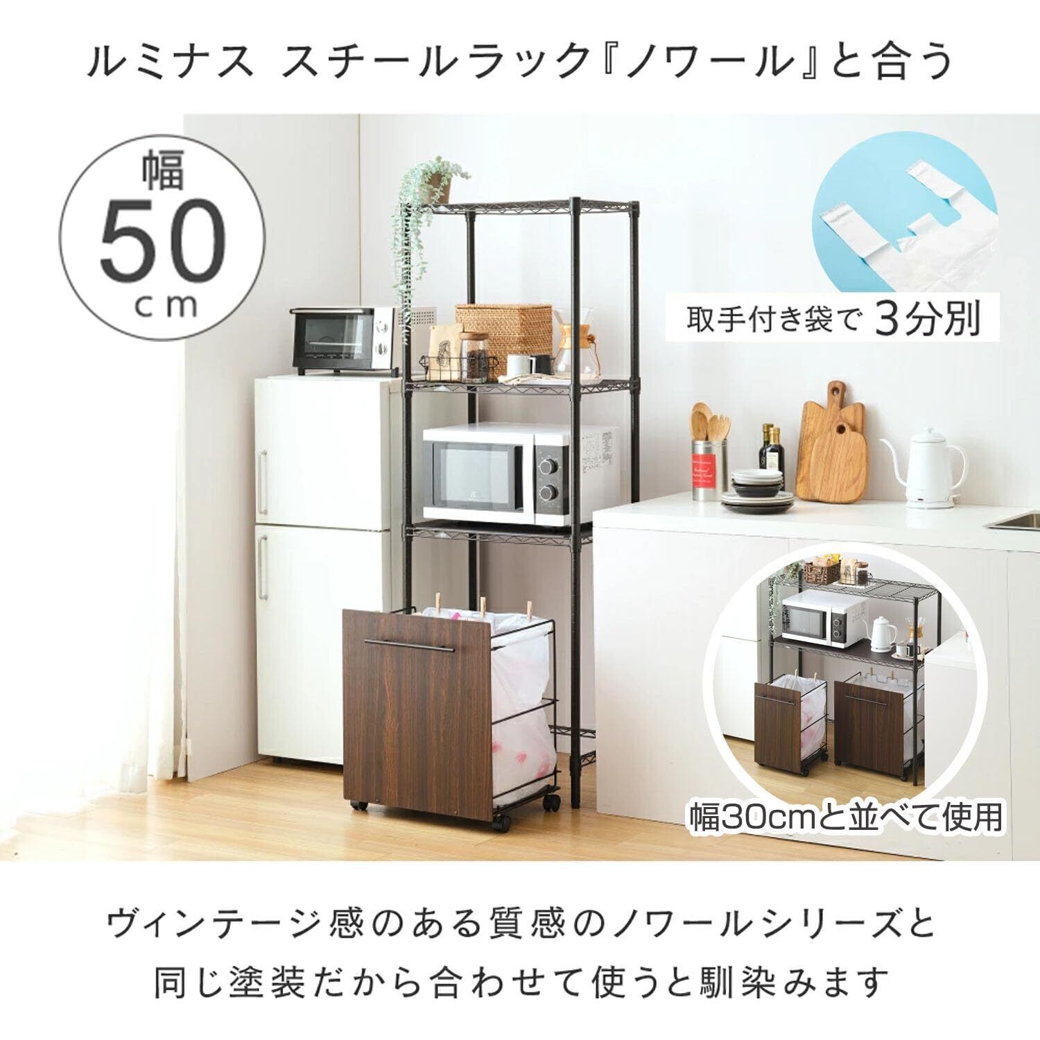 ドウシシャ レジ袋をひっかけるだけのペールワゴン キャスター付き 目隠し分別ダストワゴン ルミナスノワール LPW50-BK 幅50×奥行39×高さ58.5cm 3分別 レジ袋45号 ゴミ袋90リットル