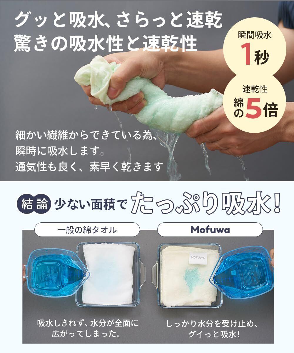 速乾性のあるマイクロファイバー素材 Mofuwaバスタオルは高品質のマイクロファイバー生地を使用しています。速乾性があり、使った後の乾燥も早いので、いつでも快適に使えます。洗濯も簡単です。