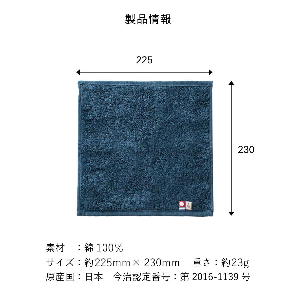 素材:綿100% / サイズ225×230mm / 重さ:約23g / 原産国:日本 / 今治認定番号:第2016-1139号
