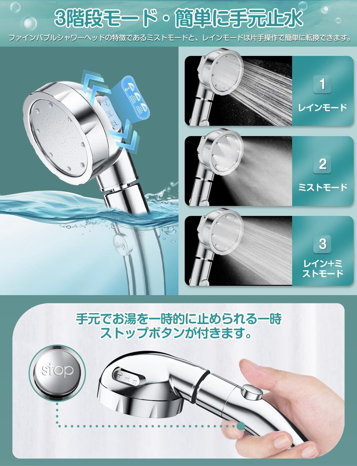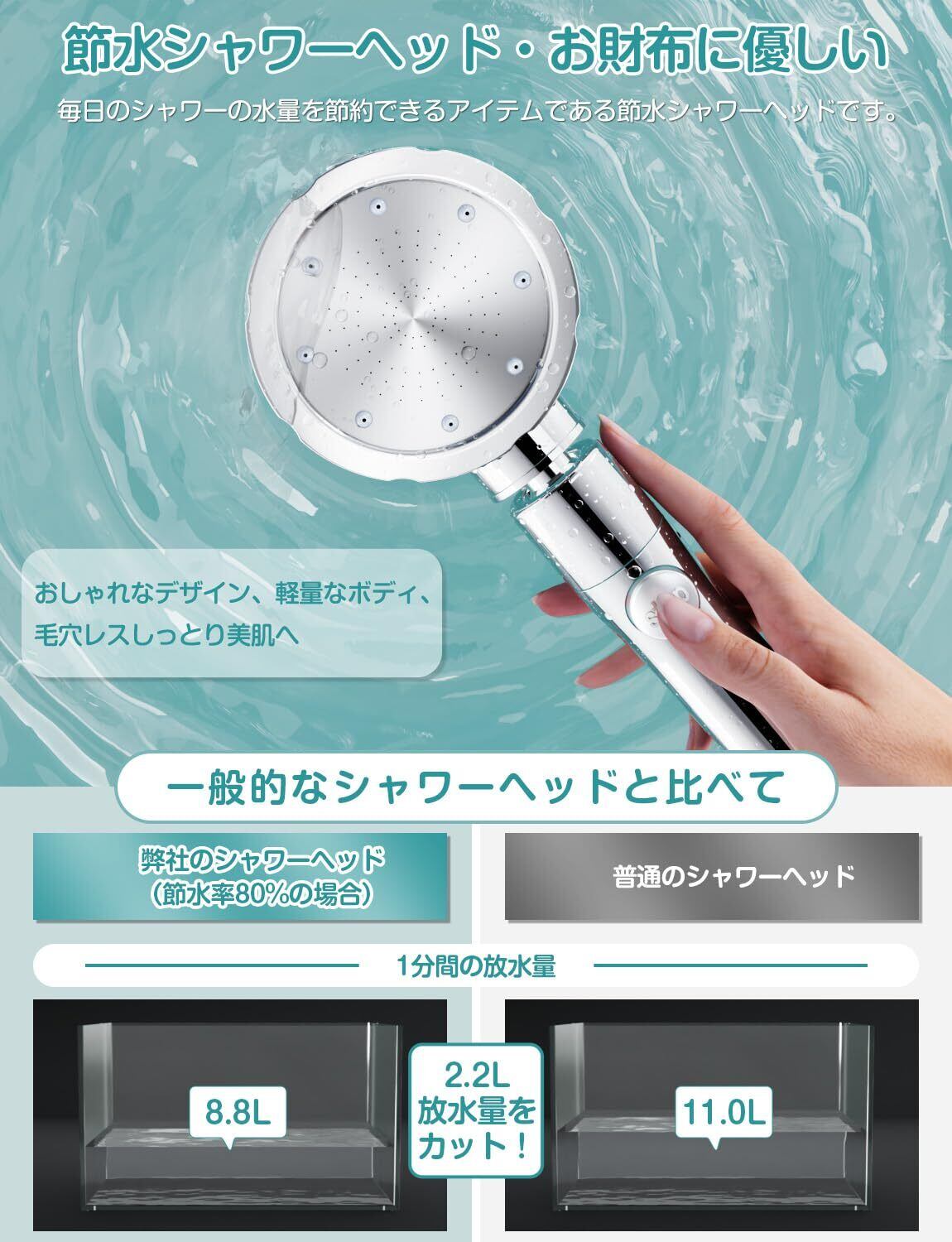 【驚き80%節水実現&簡単に手元止水・お財布に優しい✨】 この節水シャワーヘッドの散水板に0.03mmの極細散水穴を採用しており、空気対流の面積を縮んで、少量の水でも勢いのある水流に!使用感を損なわずに最大80%の節水が可能です。手元止水ボタン(ストップ機能)付きのシャワーヘッドは蛇口の開閉が必要なくワンタッチで水を止められ、給湯器の切り替えを繰り返すことによる湯温・最大適度に水温の変化を防ぎ!お風呂に入れるや頭や体を洗っている最中に、水を流したままでは無駄に水を使ってしまう、ストップ機能が自分のニーズに応じて適時に水量を調整でき、効率的に水を最大限に活用!水漏れ防止用のゴムリング(網目のような小さな丸いパーツ)がパッケージに付いており、水漏れ心配が一切なく水の無駄を最小限に抑えて、水道代の負担を減らすことができます。
