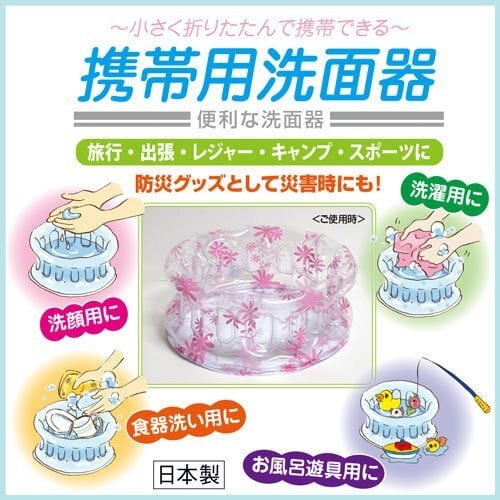洗面器のない場所での洗顔や入浴、キャンプや災害時の食器洗いとしても便利です。