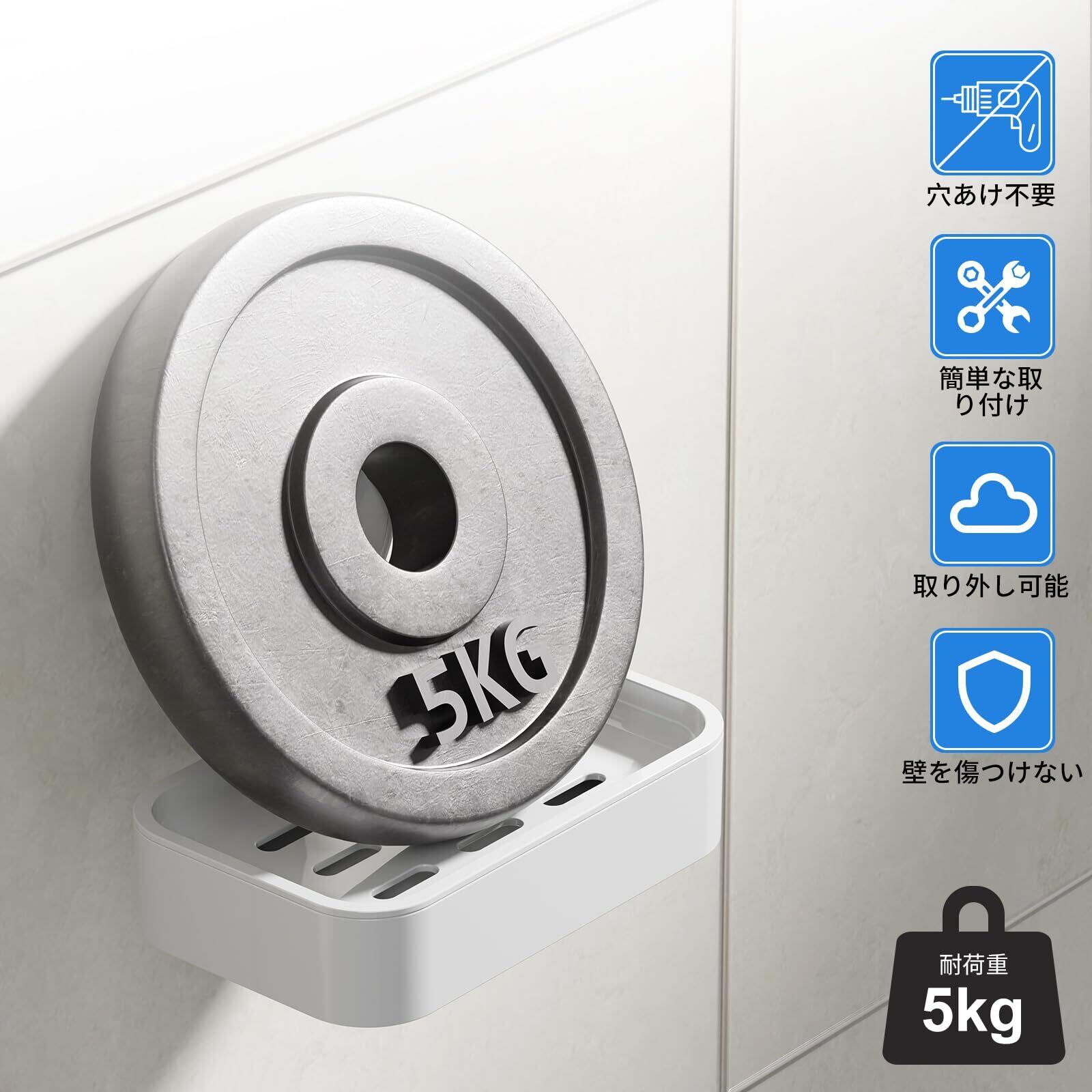 【高い実用性】壁掛けソープホルダーは、スペースを有効活用でき、カウンターをすっきり片付けることができます。バスルームでソープを置くだけでなく、この石鹸入れホルダーは、キッチンでスポンジを収納するスポンジホルダーとしても使用できます。最大耐荷重は約5kg。