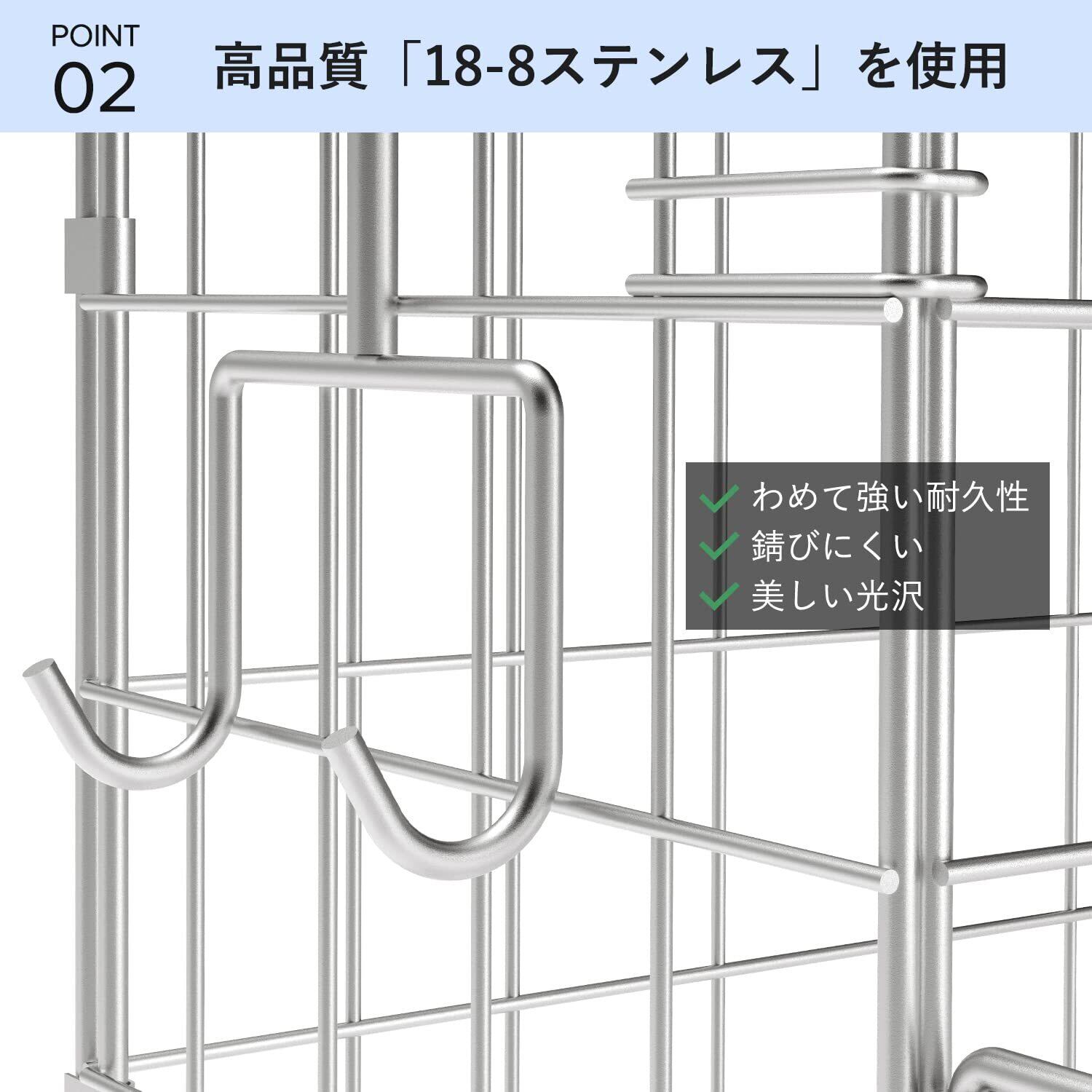 【高品質「18-8ステンレス」】水垢や石鹸カスがたまりやすい洗面台周りには、錆びることを気にしなくて良い、18-8ステンレス鋼を選んでいます。錆びに強くて、鏡面に磨き上げられた上品な高級感。